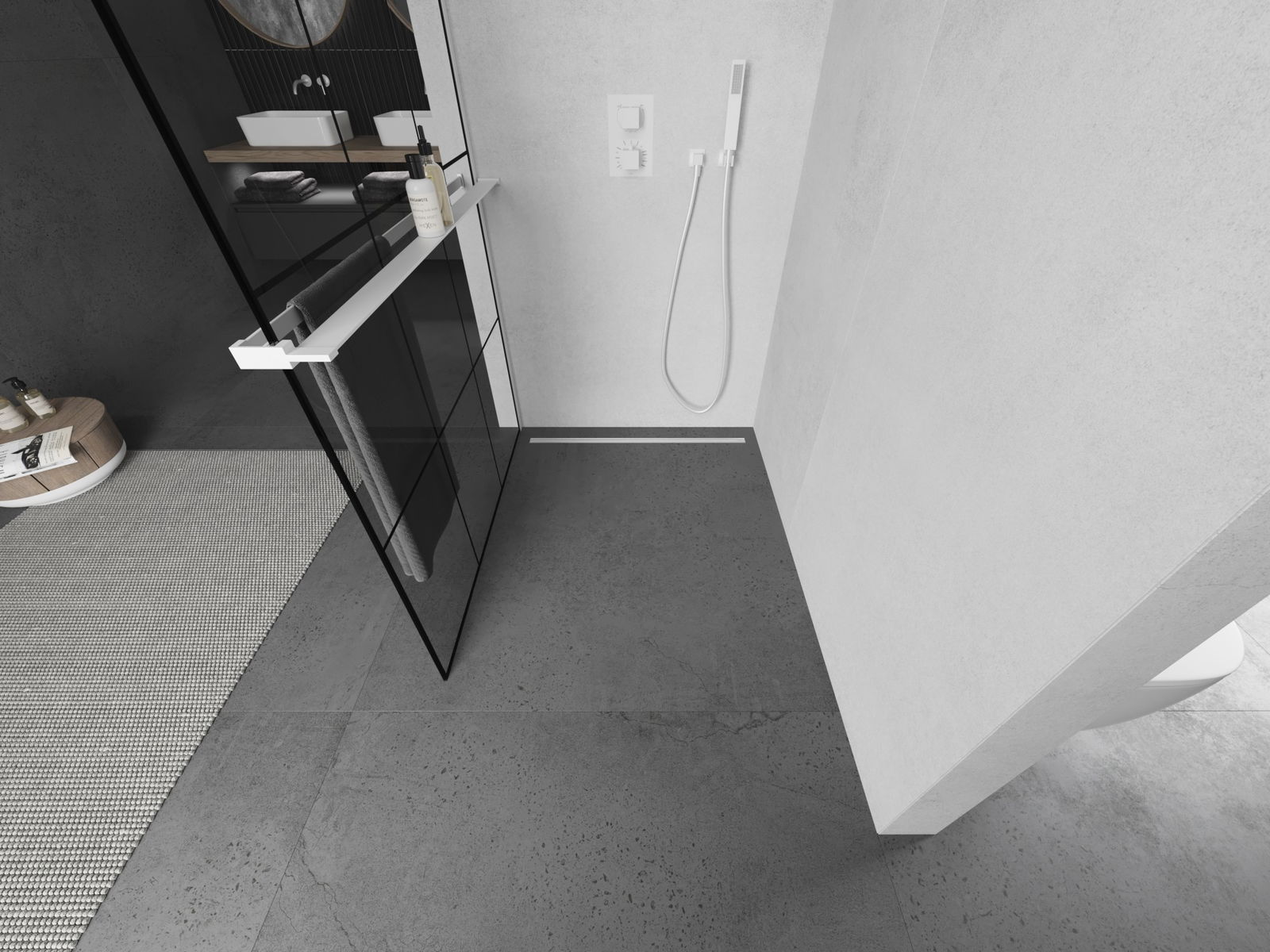 Produktą, atsižvelgiant į poreikius, galima sumontuoti tiek ant dušo padėklo, tiek tiesiogiai ant grindų. Universalus montavimo būdas leidžia pritaikyti produktą įvairių tipų vonios kambariams ir erdvės konfigūracijoms.