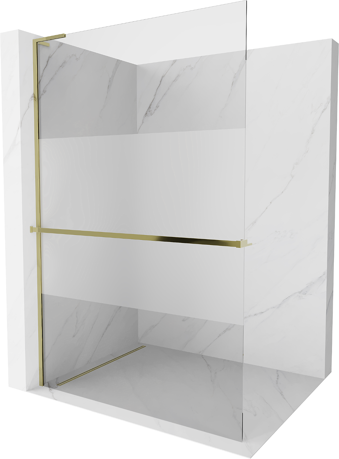 Mexen Kioto+ L dušo siena su Walk-in lentyna 90 x 200 cm, skaidrus/šerkšnas, auksinė - 800-090-123-50-35
