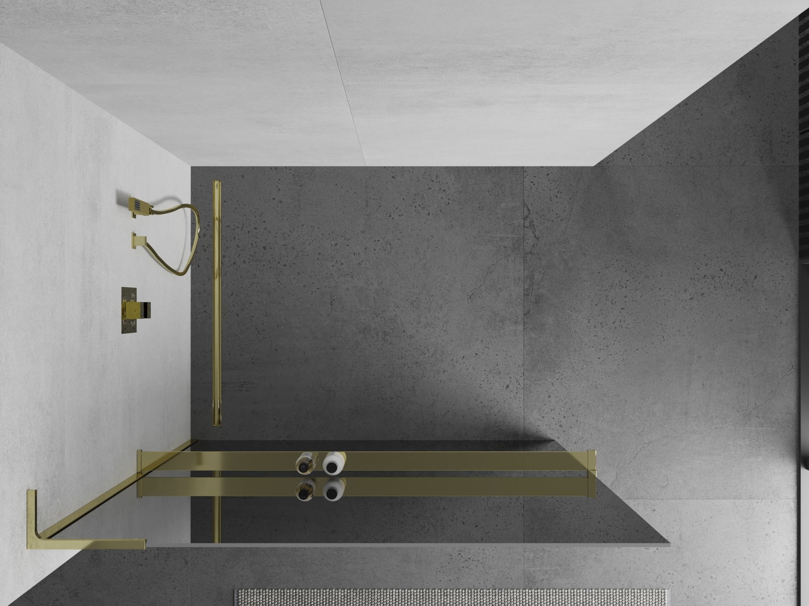 Mexen Kioto+ L dušo sienelė su lentyna Walk-in 80 x 200 cm, veidrodis, auksinė - 800-080-123-50-50