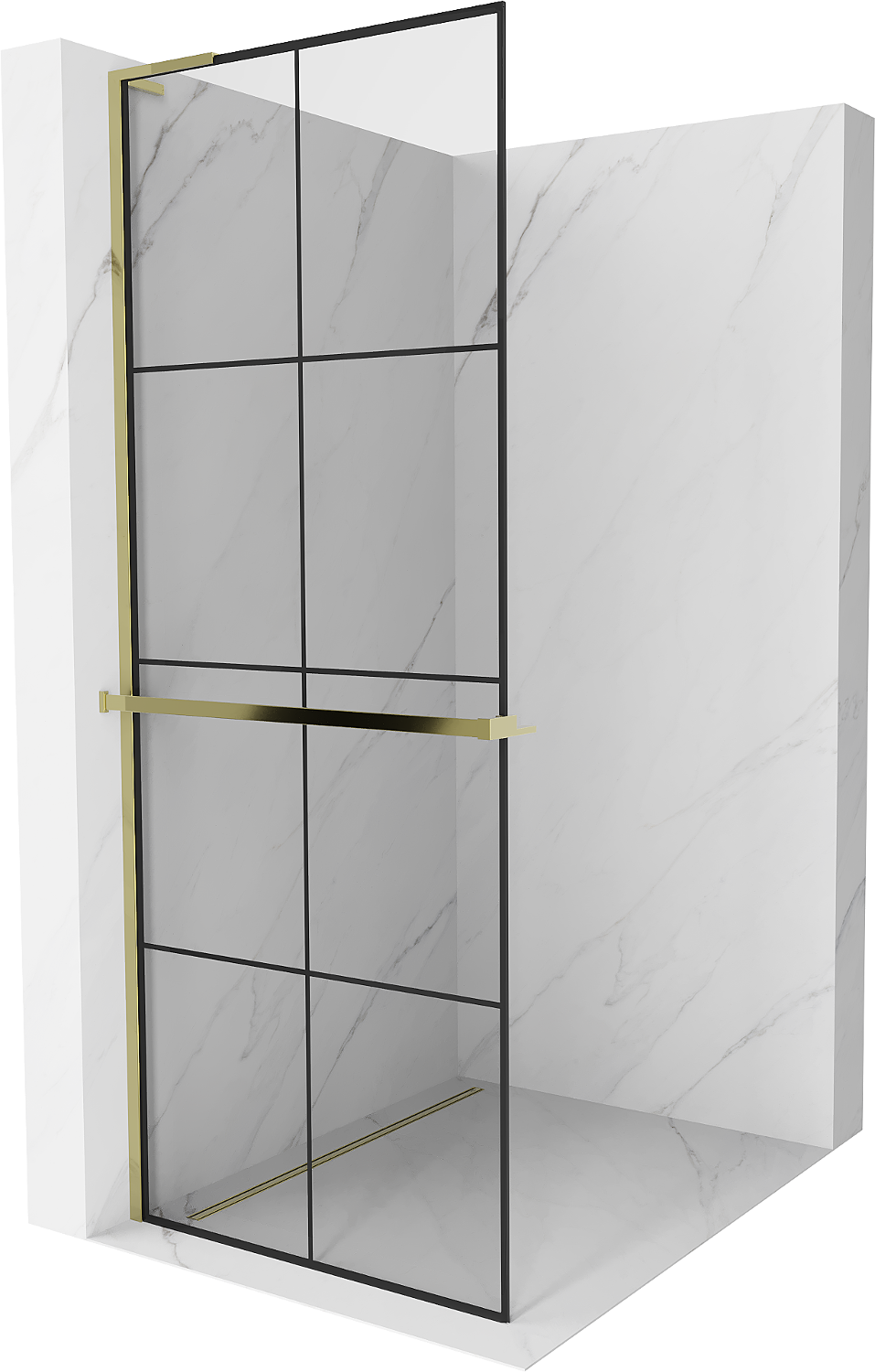 Mexen Kioto+ L dušo sienelė su lentyna Walk-in 80 x 200 cm, juodas tinklelis, auksinis - 800-080-123-50-77