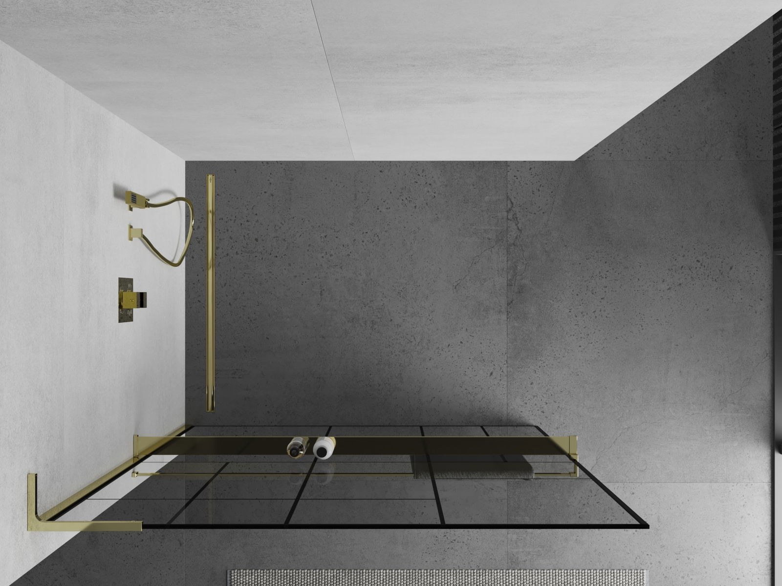 Mexen Kioto+ L sienelė dušo su lentyna Walk-in 100 x 200 cm, juodas raštas, auksinis - 800-100-123-50-78
