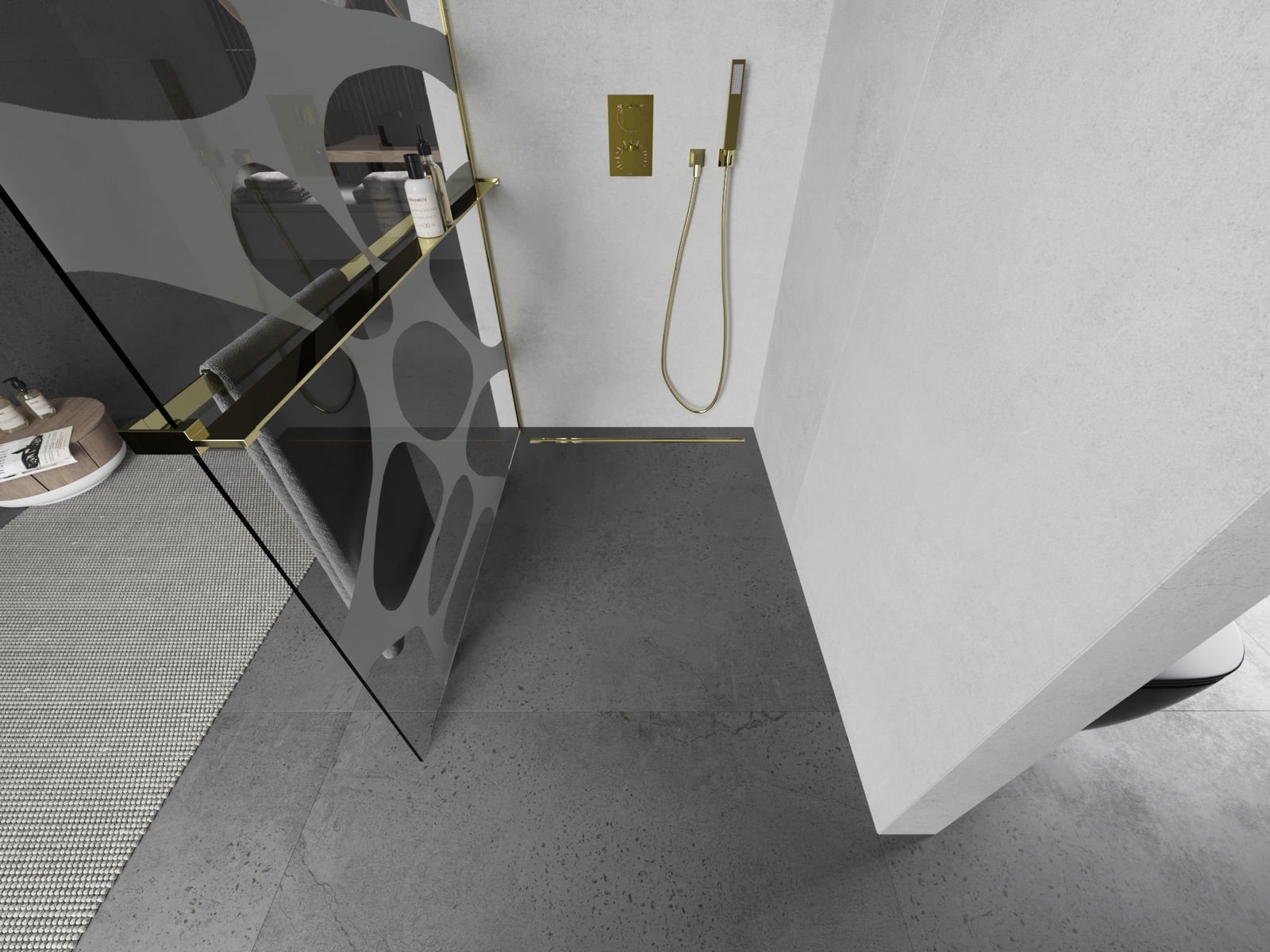 Mexen Kioto+ L dušas siena su lentyna Walk-in 70 x 200 cm, balta banga, auksinė - 800-070-123-50-97