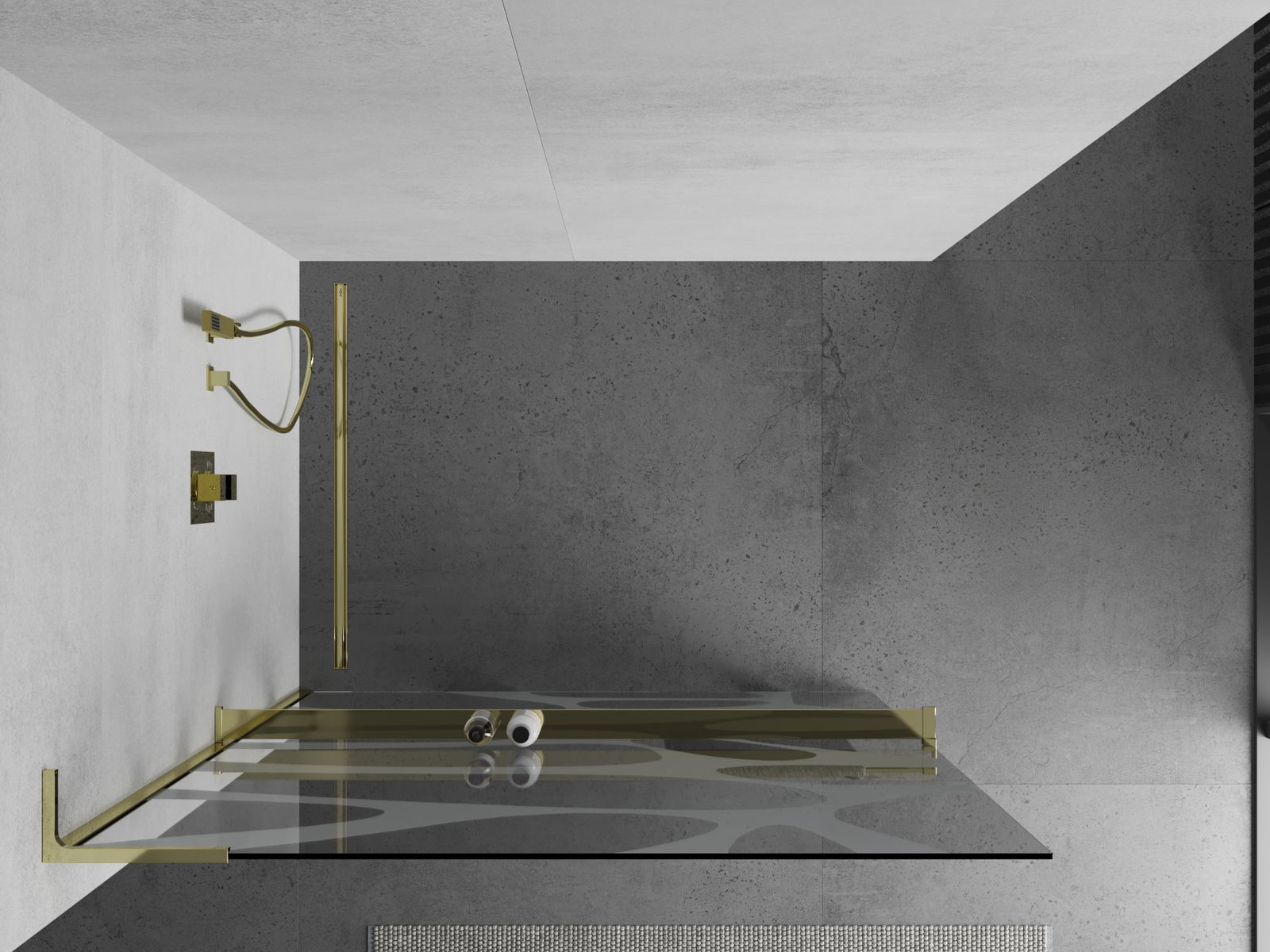 Mexen Kioto+ L dušo siena su lentyna Walk-in 110 x 200 cm, balta banga, auksinė - 800-110-123-50-97