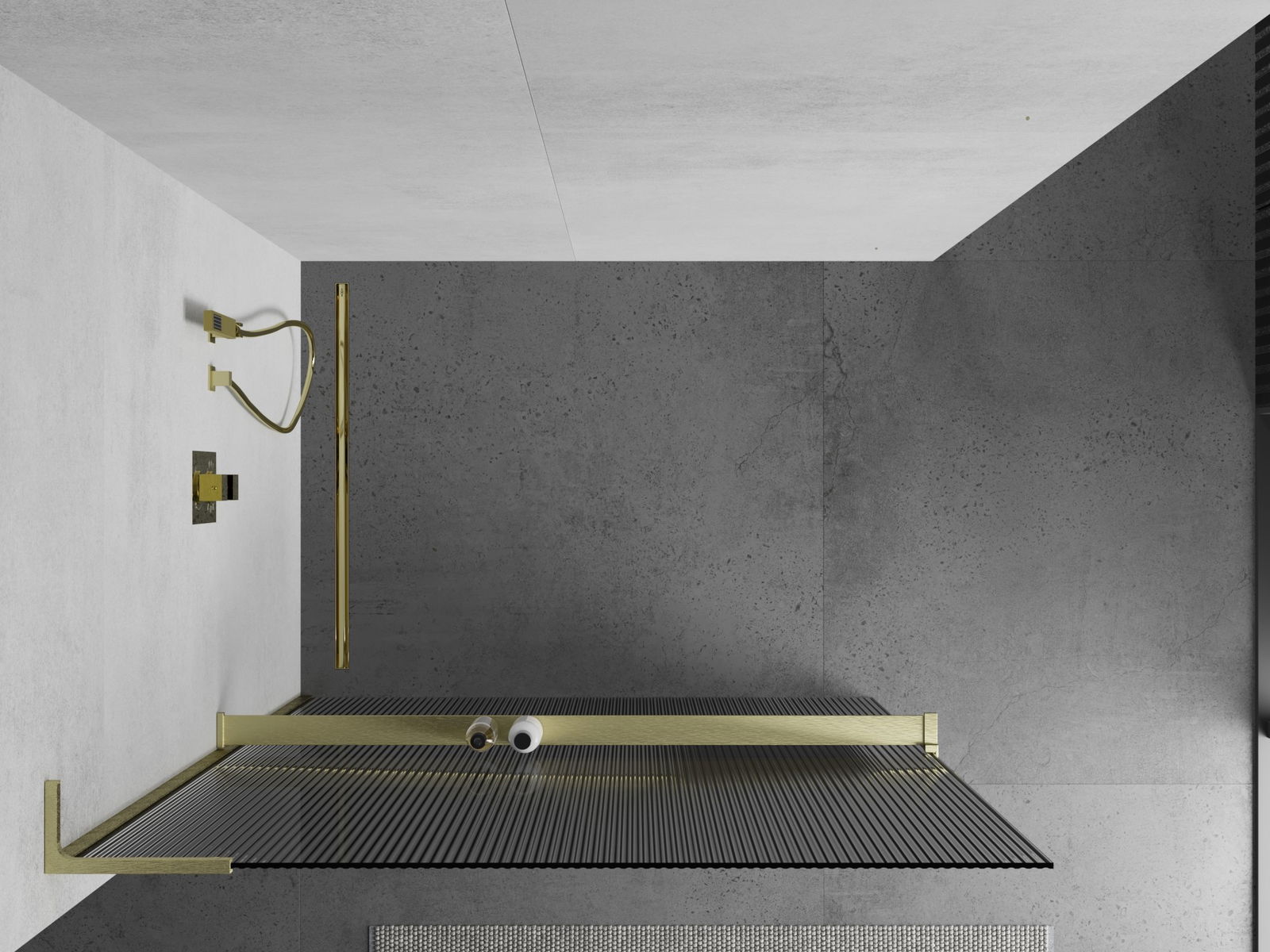 Mexen Kioto+ L dušo sienelė su lentyna Walk-in 100 x 200 cm, dryžiai, šlifavimo auksas - 800-100-123-55-09