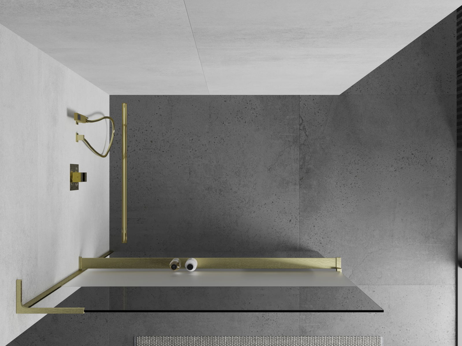 Mexen Kioto+ L dušo siena su lentyna Walk-in 90 x 200 cm, skaidri/matė, šlifuota auksinė - 800-090-123-55-35