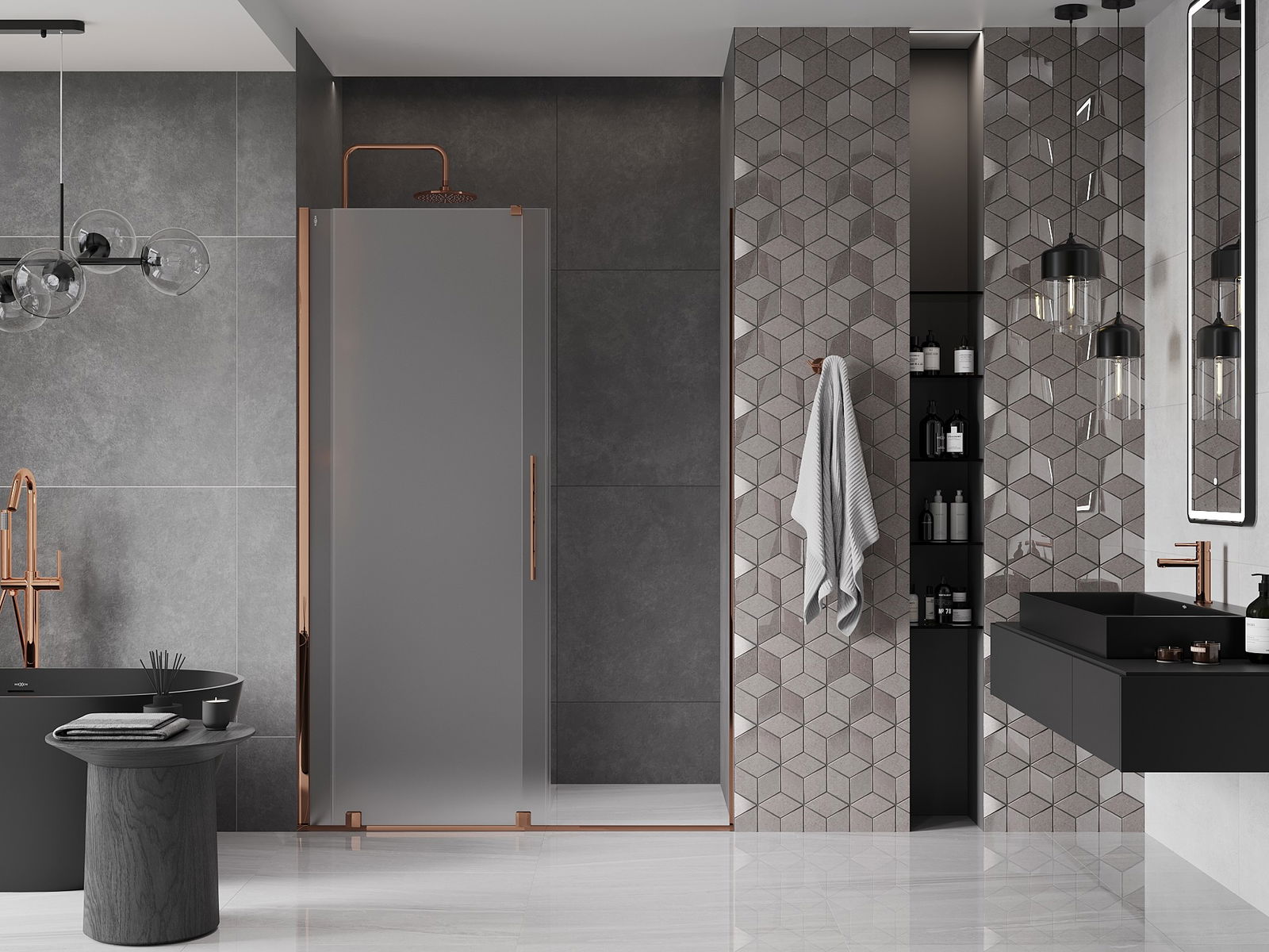 Mexen Velar stumdomos dušo durys 130 cm, matinės, rožinio aukso - 871-130-000-31-60