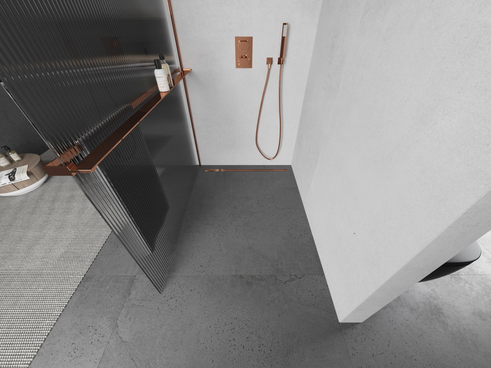 Mexen Kioto+ L dušo sienelė su lentyna Walk-in 80 x 200 cm, juostelės, rožinis auksas - 800-080-123-60-09