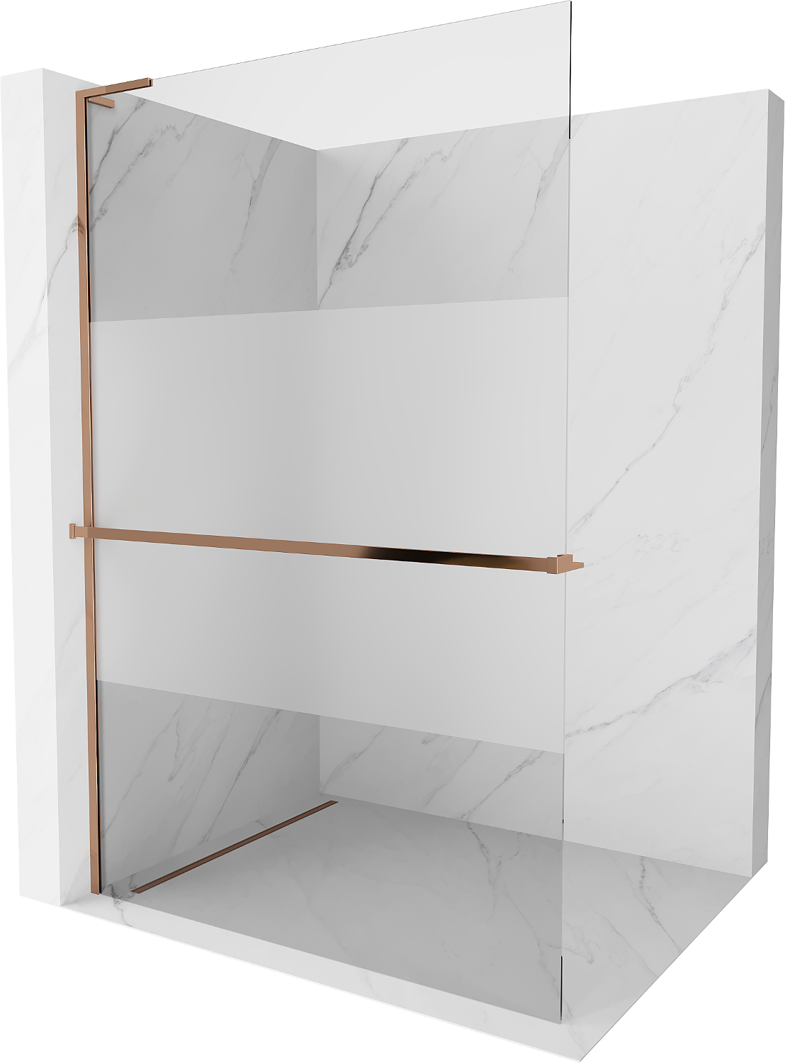 Mexen Kioto+ L dušo sienelė su lentyna Walk-in 110 x 200 cm, skaidri/matinė, rožinis auksas - 800-110-123-60-35