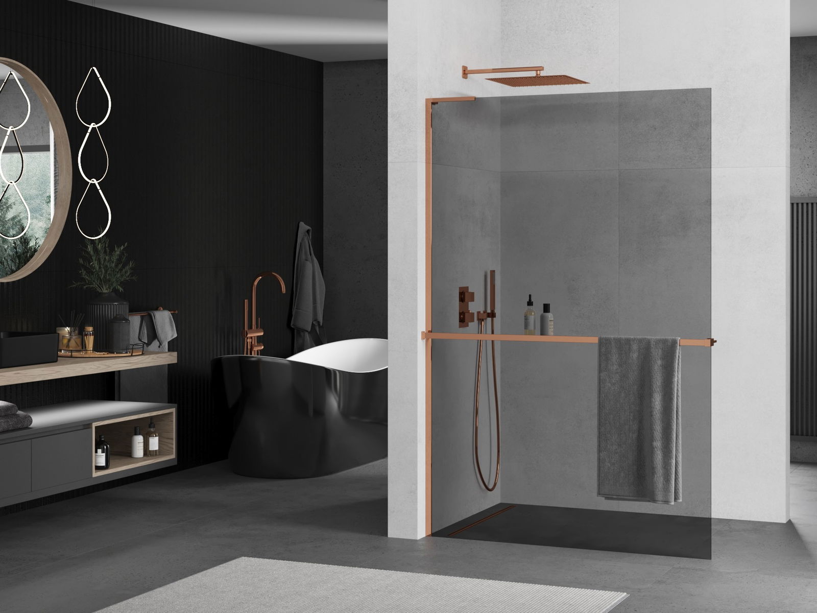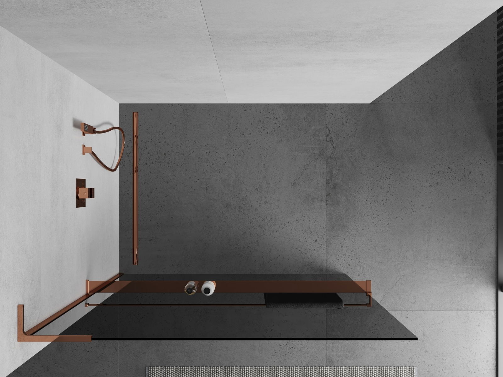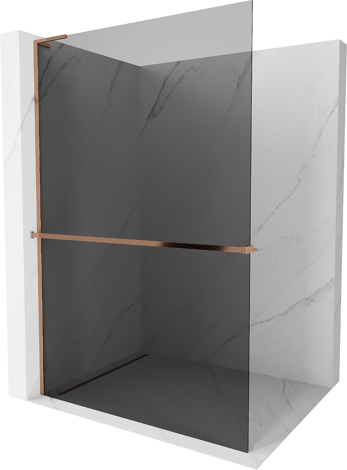 Mexen Kioto+ L dušo sienelė su lentyna Walk-in 70 x 200 cm, grafitas, rožinis auksas - 800-070-123-60-40