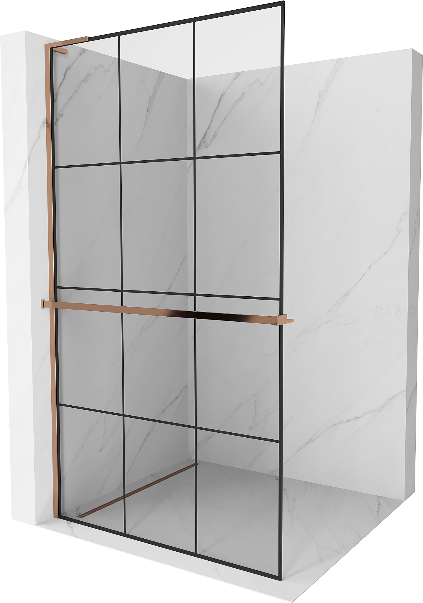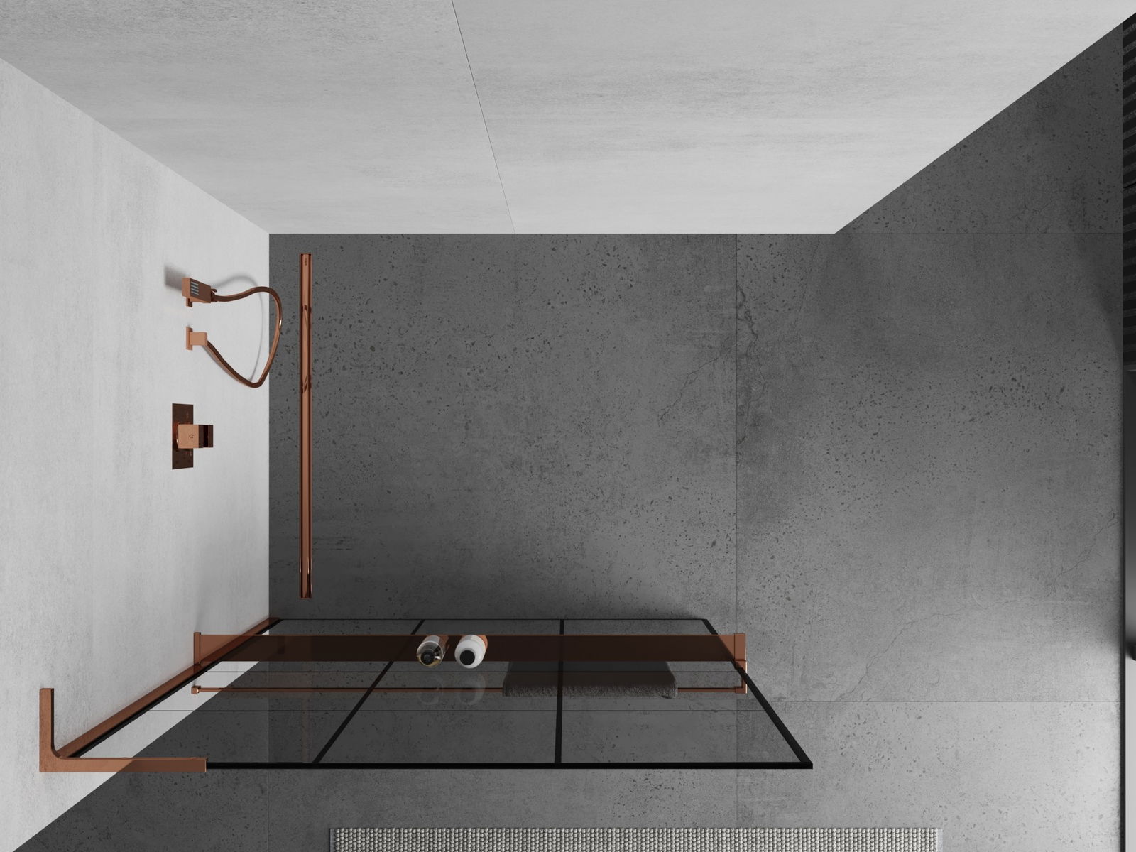 Mexen Kioto+ L dušo sienelė su lentyna Walk-in 100 x 200 cm, juodas tinklelis, rožinis auksas - 800-100-123-60-77