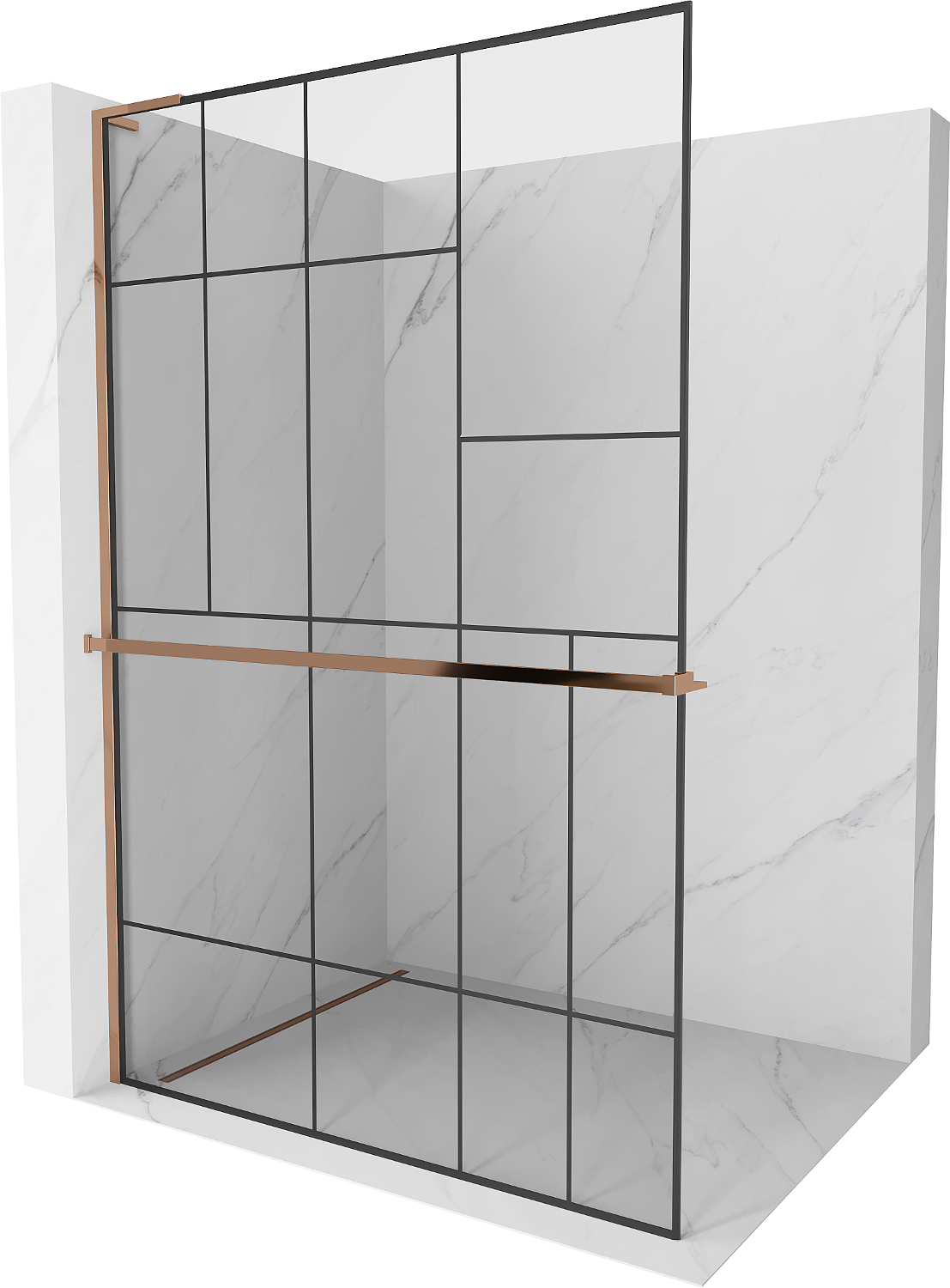 Mexen Kioto+ L dušo sienelė su lentyna Walk-in 120 x 200 cm, juodas raštas, rožinė auksas - 800-120-123-60-78