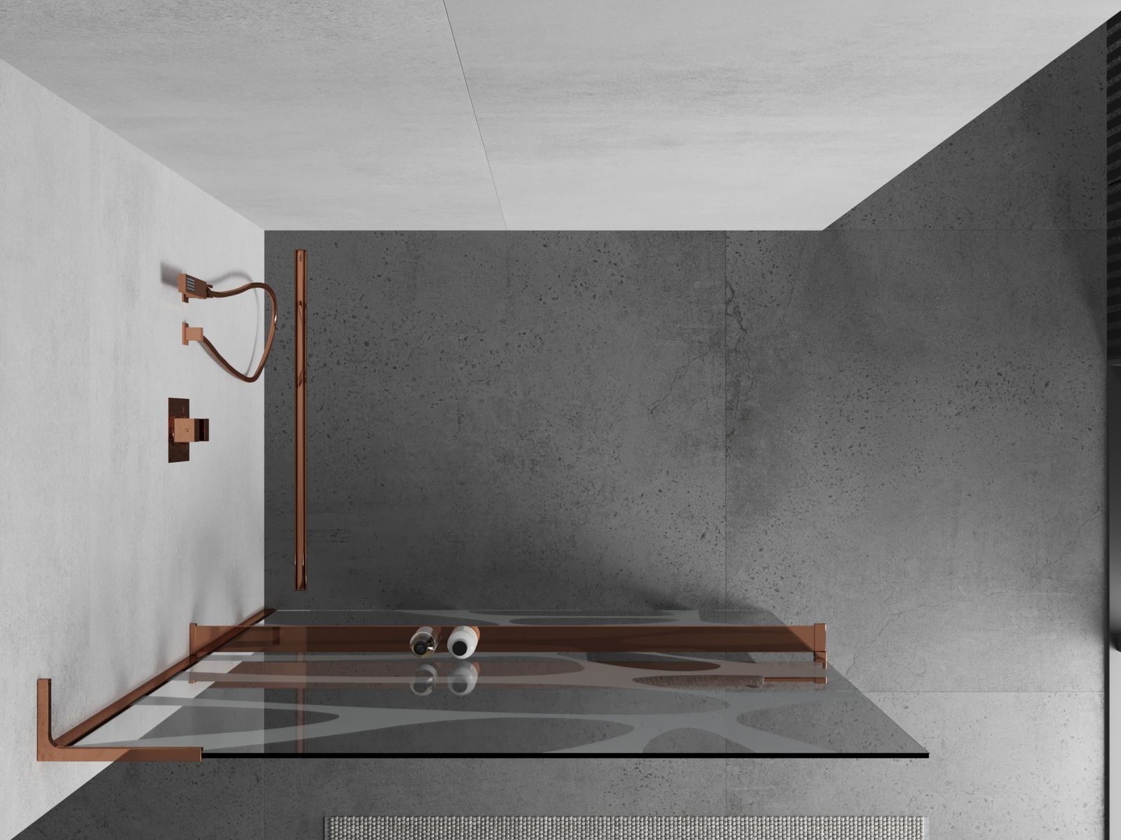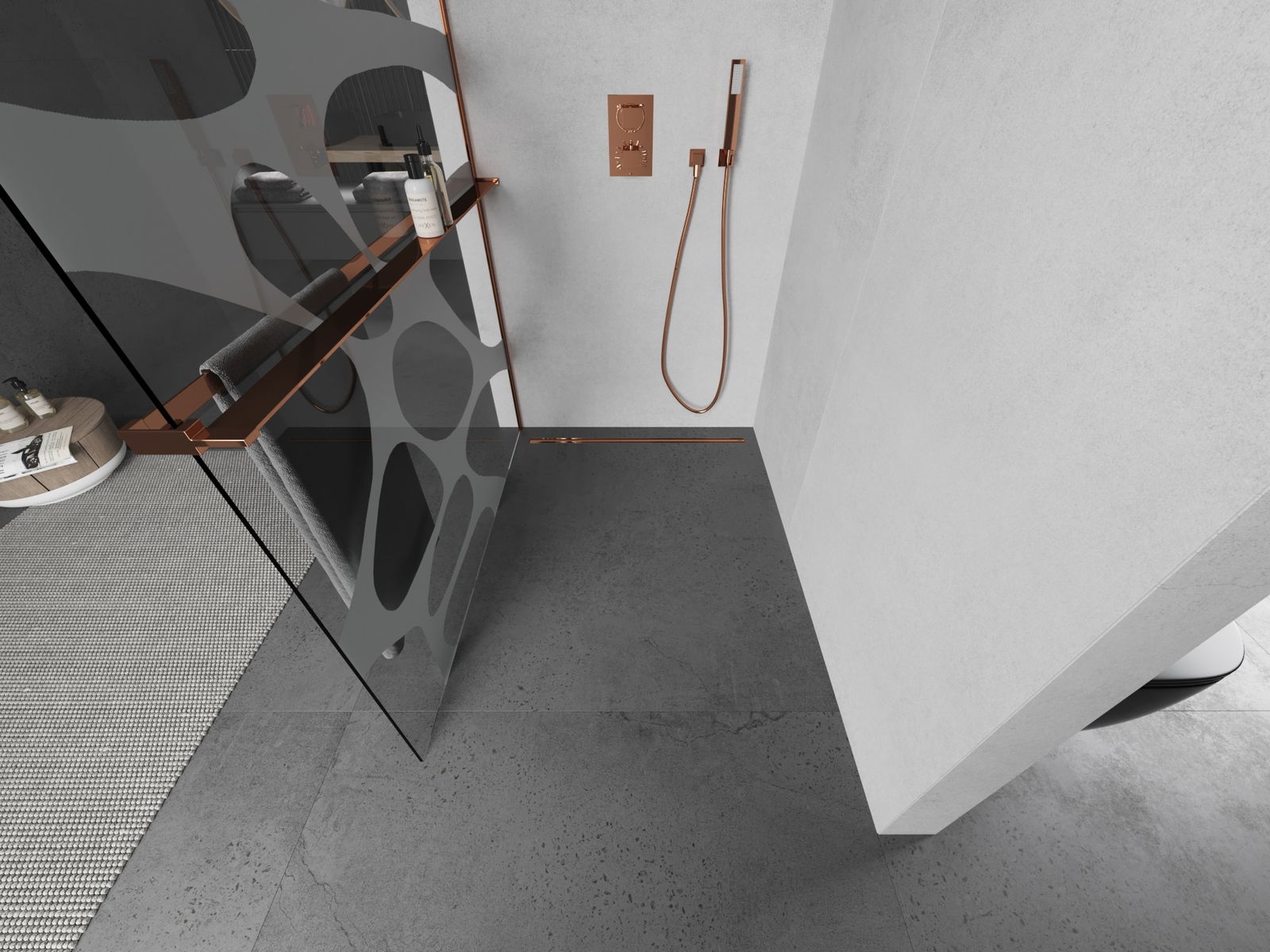 Mexen Kioto+ L dušo sienelė su lentyna Walk-in 80 x 200 cm, balta banga, rožinis auksas - 800-080-123-60-97