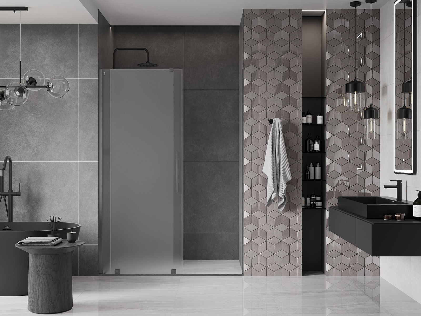 Mexen Velar stumdomosios dušo durys 130 cm, matinės, šautuvo pilkas šepečiuotas - 871-130-000-31-66