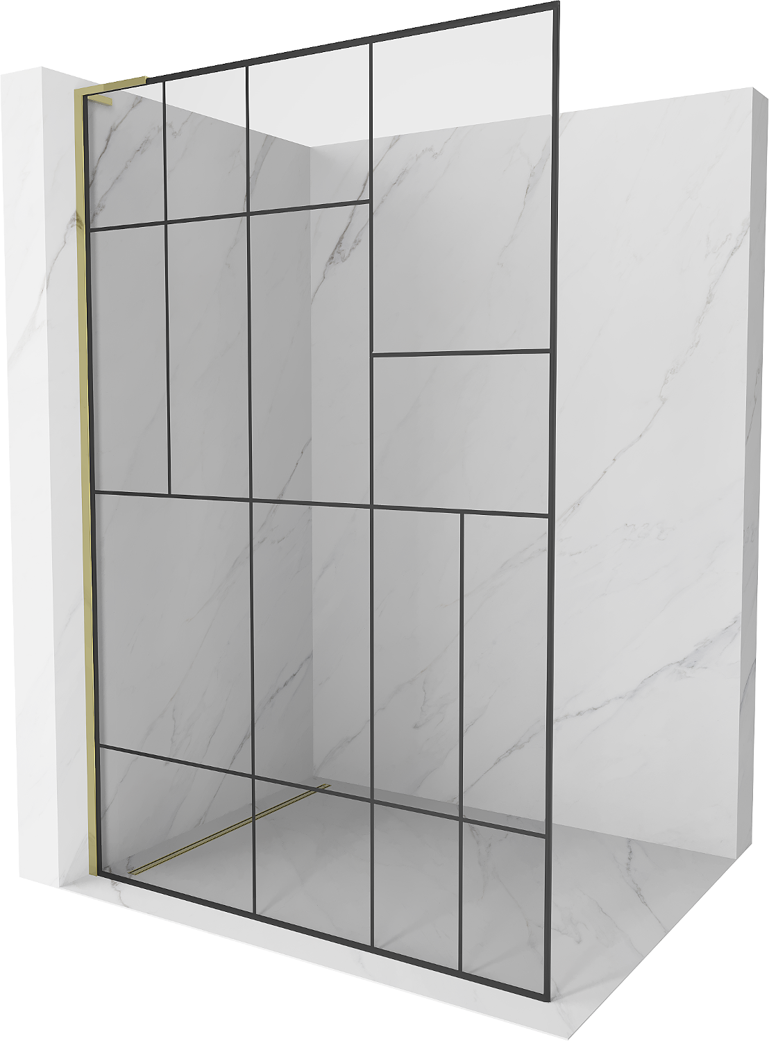 Mexen Kioto L Walk-in dušo siena 110 x 200 cm, juodas raštas, auksinė - 800-110-103-50-78