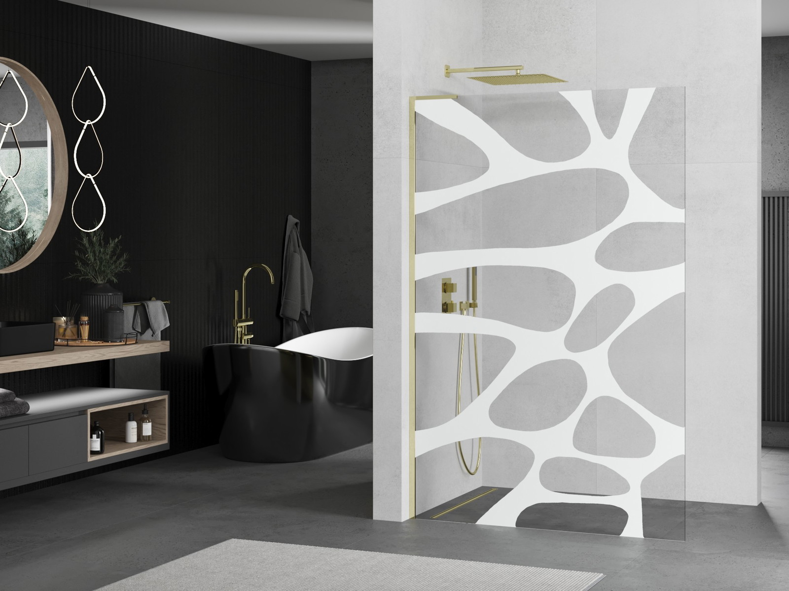 Mexen Kioto L Walk-in dušo siena 70 x 200 cm, balta banga, auksinė - 800-070-103-50-97