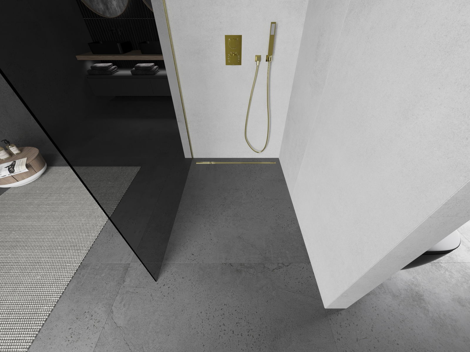 Mexen Kioto L dušo sienelė Walk-in 110 x 200 cm, grafitas, šlifuotas auksas - 800-110-103-55-40