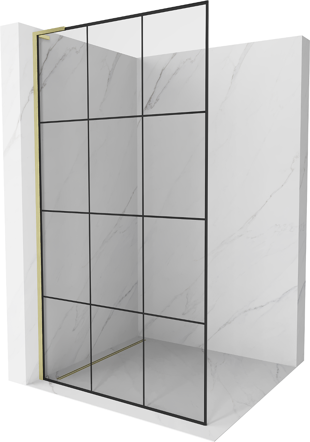 Mexen Kioto L dušo siena Walk-in 120 x 200 cm, juodas tinklelis, auksinė šlifuota - 800-120-103-55-77