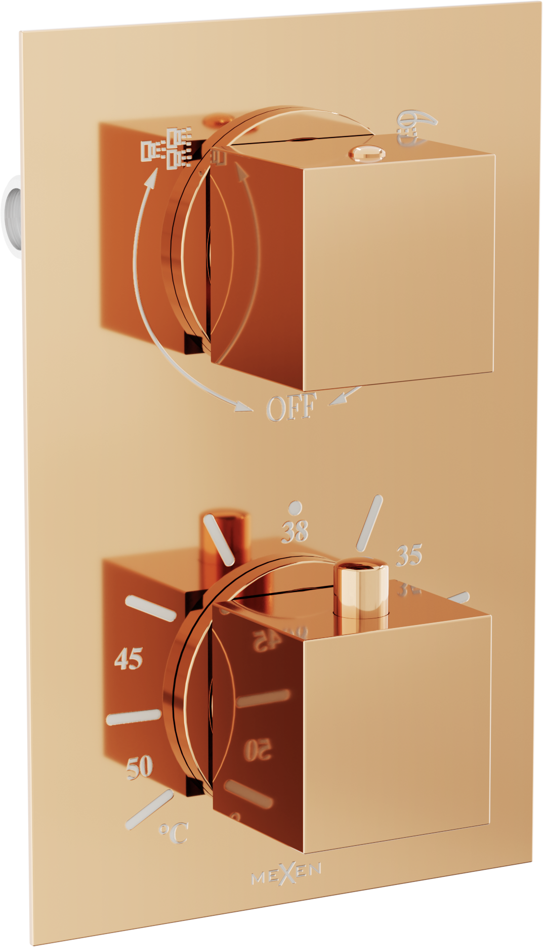Mexen Cube termostatinis vonios ir dušo maišytuvas 2-išėjimų, rožinis auksas - 77502-60