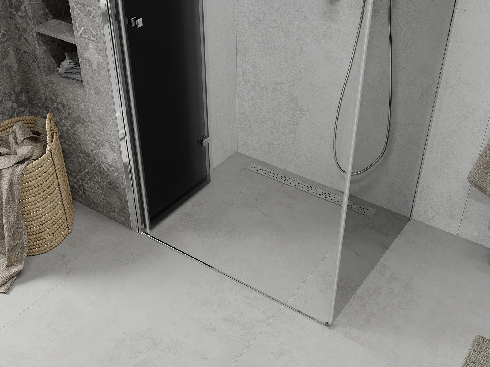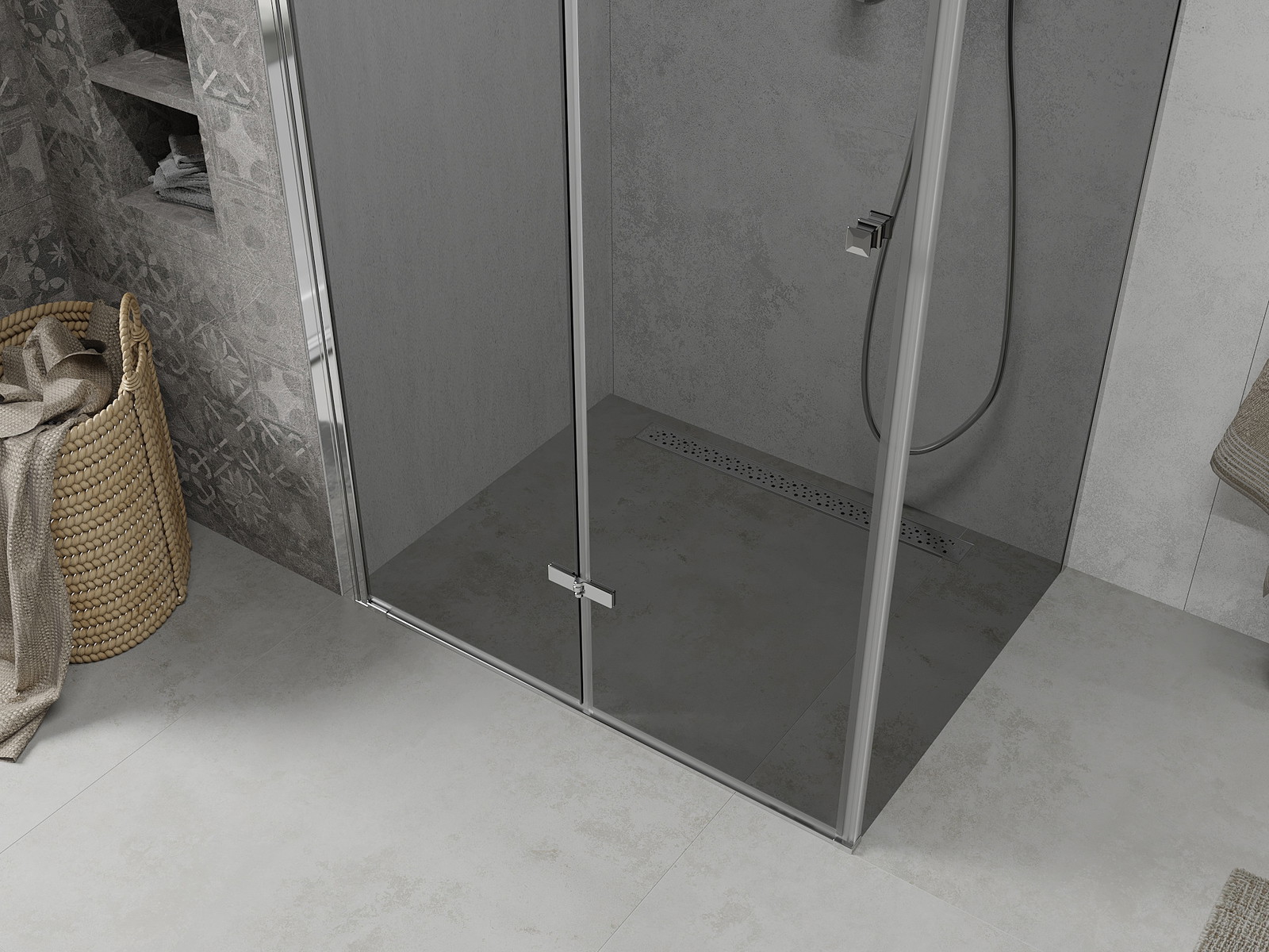Galimybė sulenkti duris, tiek į išorę, tiek į vidų, leidžia gauti daugiau erdvės nenaudojant dušo. Tai yra idealus sprendimas mažesnėms vonios kambariams, maksimaliai išnaudojantis turimą plotą.