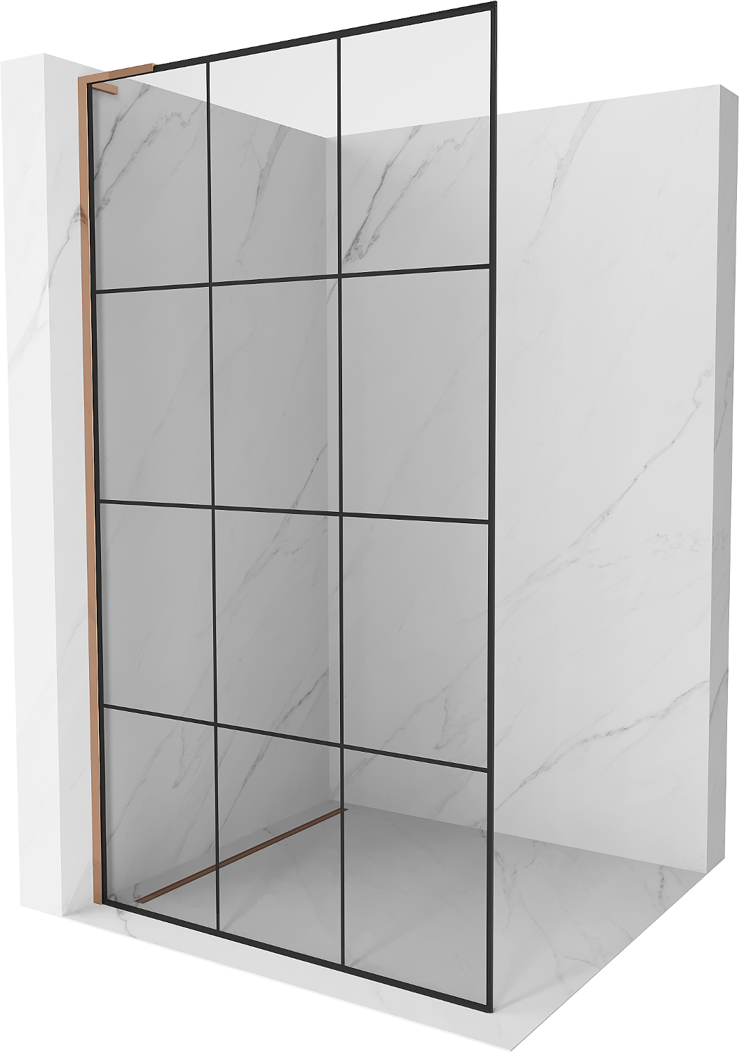 Mexen Kioto L dušo siena Walk-in 100 x 200 cm, juodasis tinklelis, rožinis auksas - 800-100-103-60-77