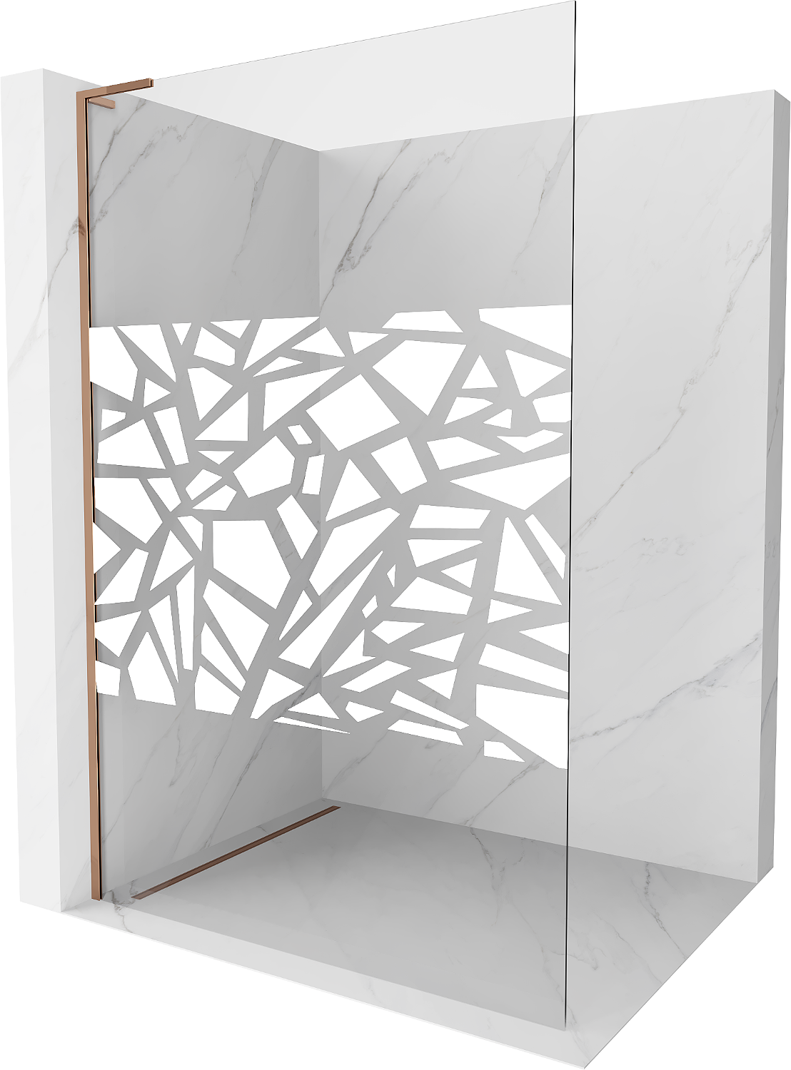Mexen Kioto L sienelė dušo Walk-in 80 x 200 cm, baltas raštas, rožinis auksas - 800-080-103-60-85