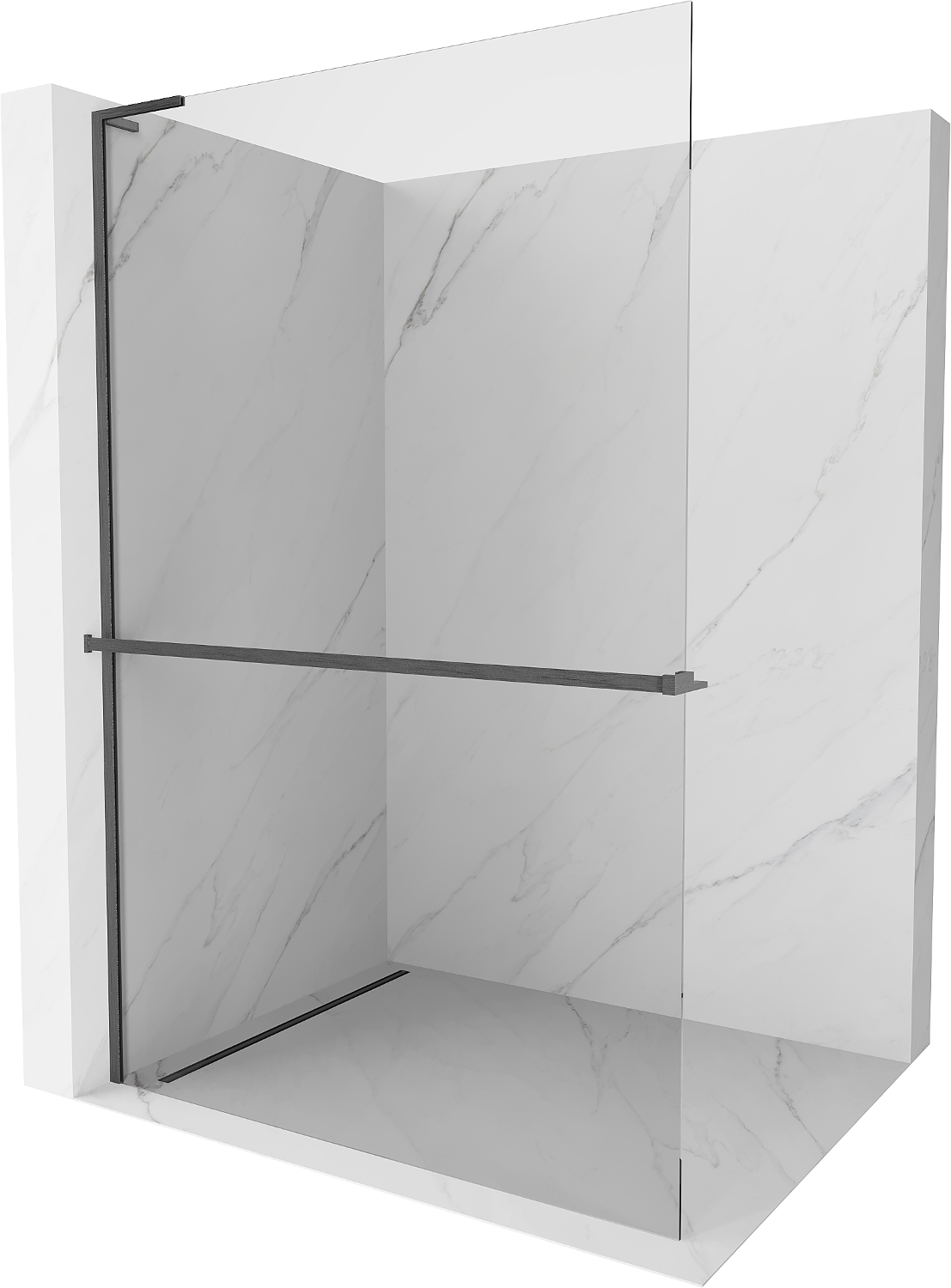 Mexen Kioto+ L duso sienelė su lentynėle Walk-in 70 x 200 cm, skaidri, šepečiu šukuota ginklų pilka - 800-070-123-66-00