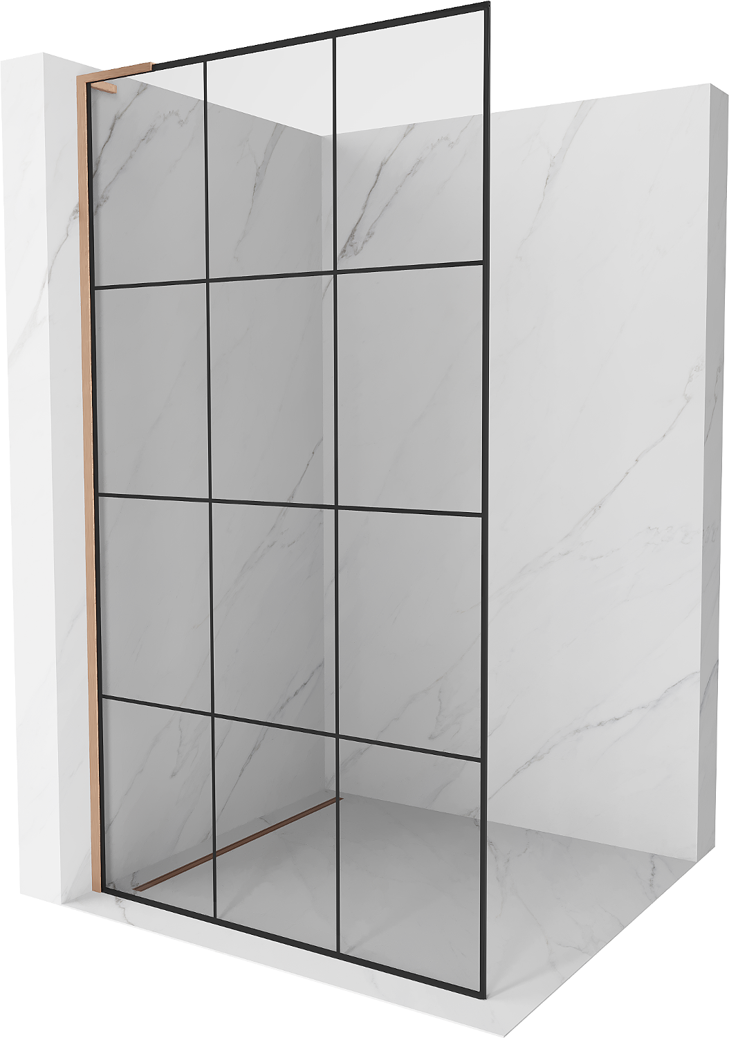 Mexen Kioto L dušas siena Walk-in 120 x 200 cm, juodos spalvos tinklelis, šlifuota varis - 800-120-103-65-77