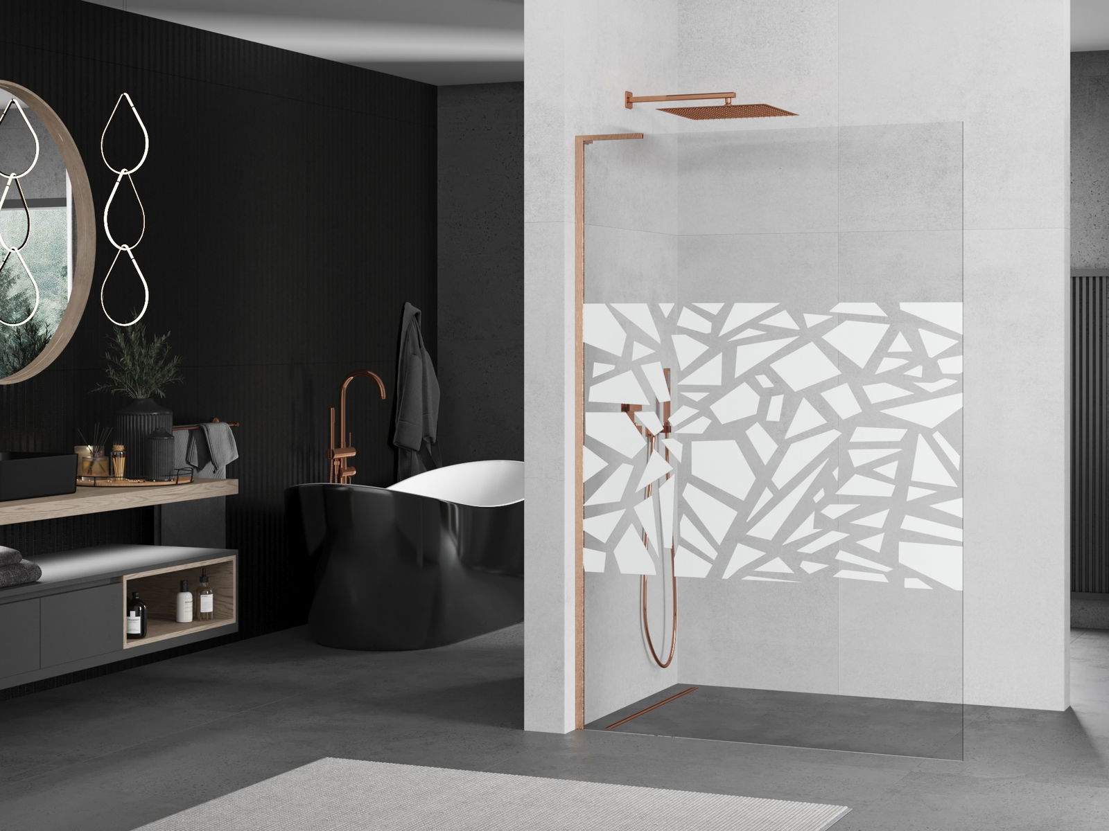 Mexen Kioto L dušo sienelė Walk-in 110 x 200 cm, baltas raštas, šlifuota varis - 800-110-103-65-85