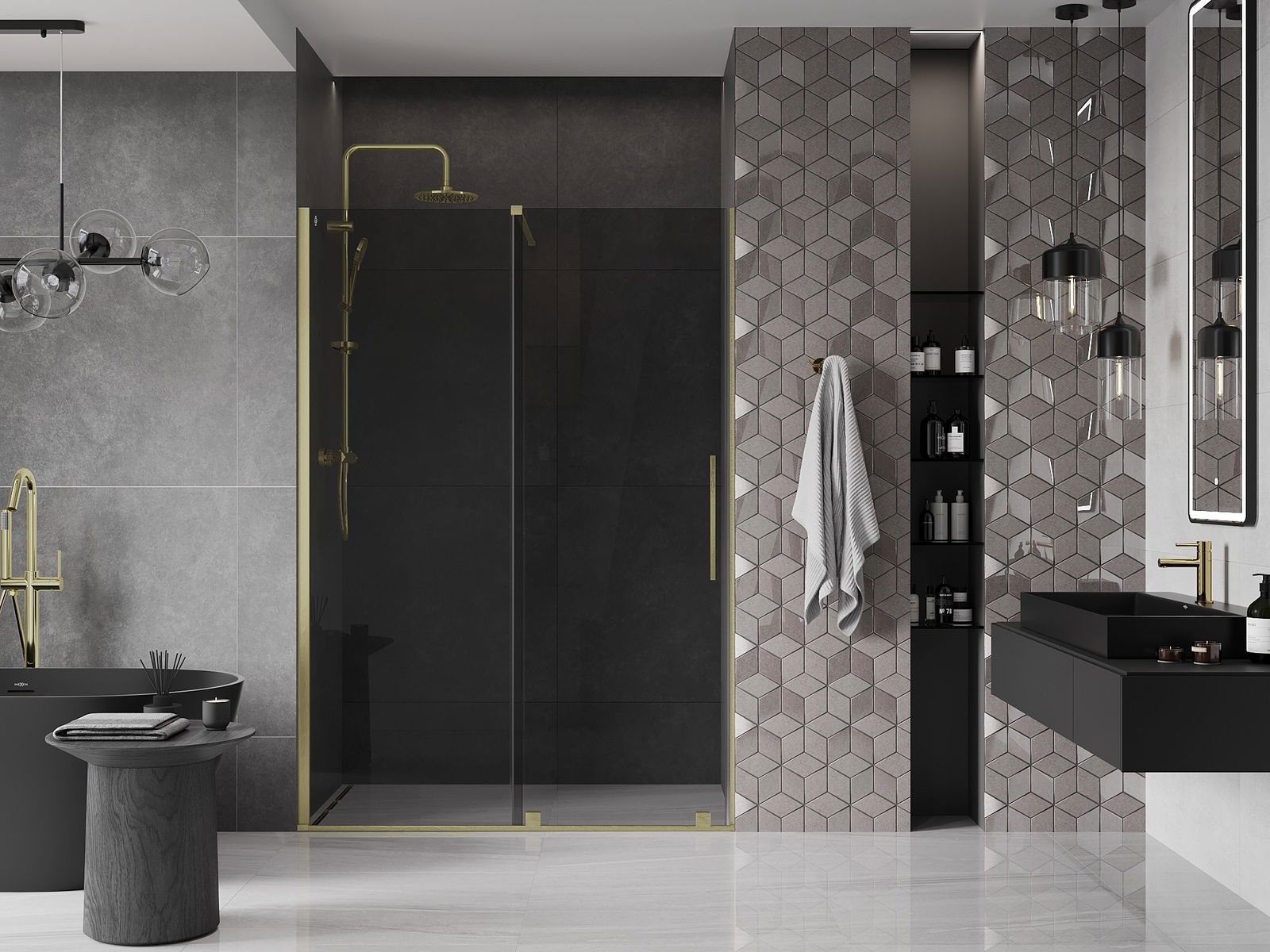 Mexen Velar stumdomos dušo durys 150 cm, grafito, auksinė šlifuota - 871-150-000-41-55