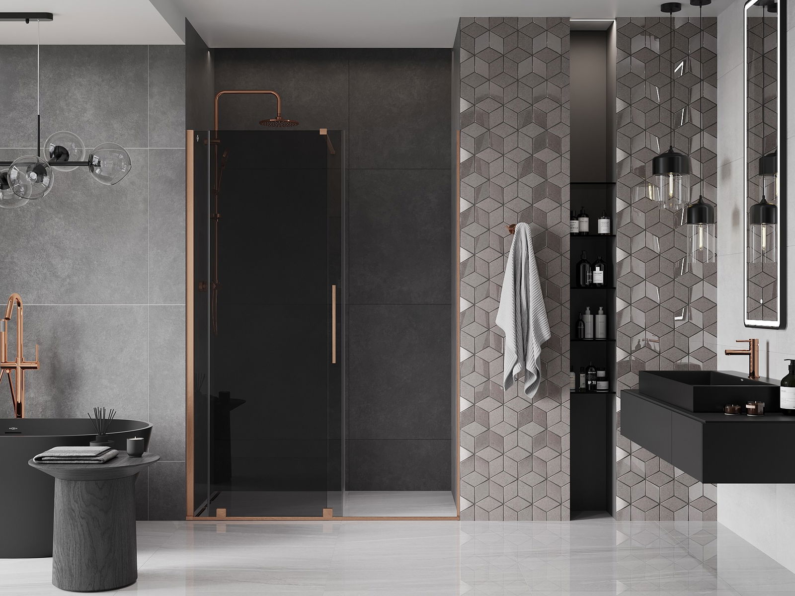 Mexen Velar stumdomos dušo durys 150 cm, grafitas, šlifuotas varis - 871-150-000-41-65