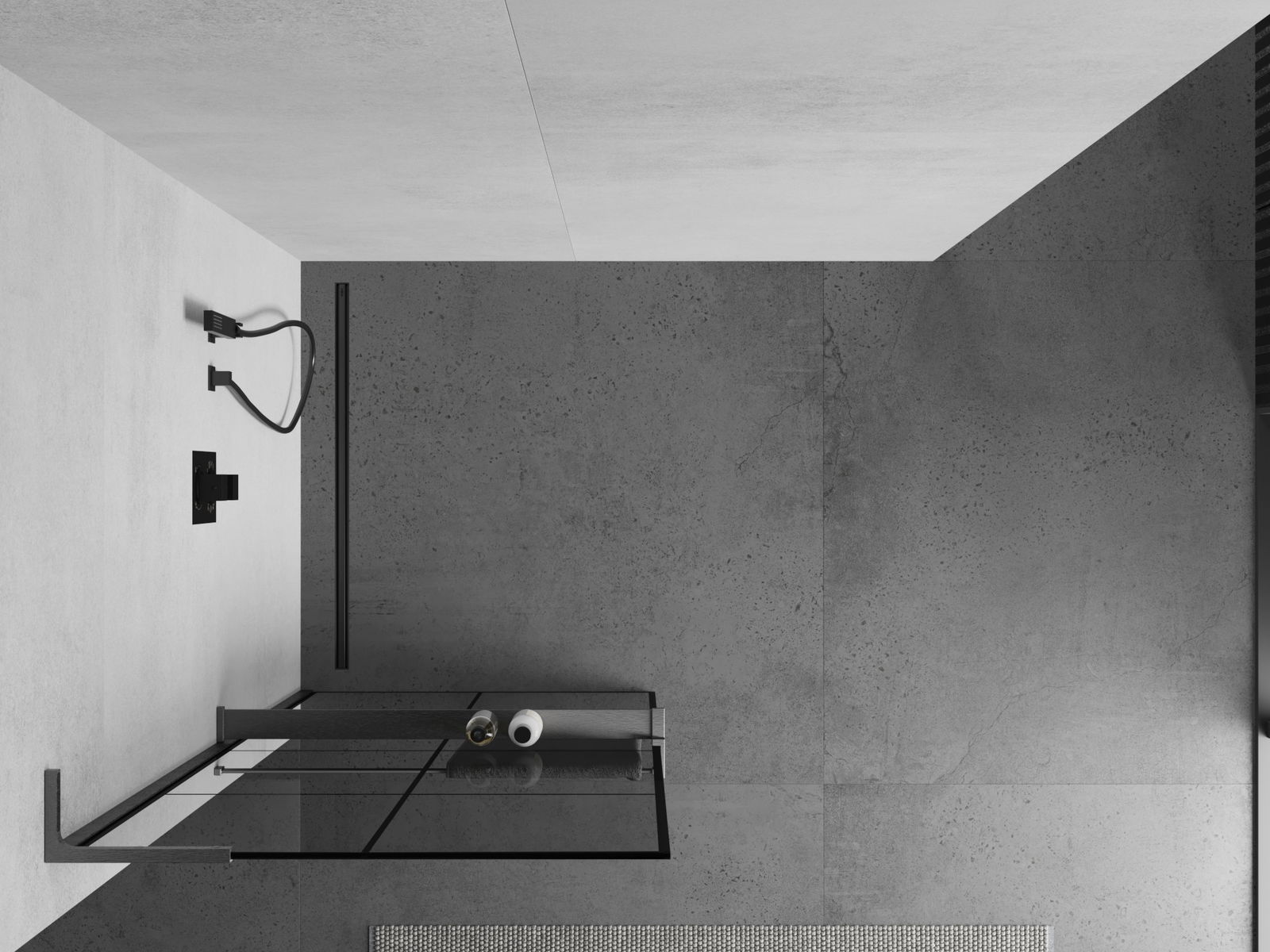 Mexen Kioto+ L dušo sienelė su lentyna Walk-in 70 x 200 cm, juodas tinklelis, gun gray šlifuota - 800-070-123-66-77