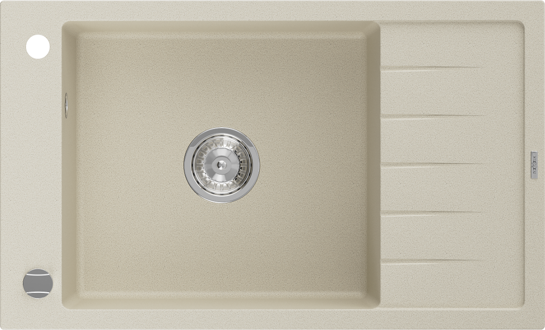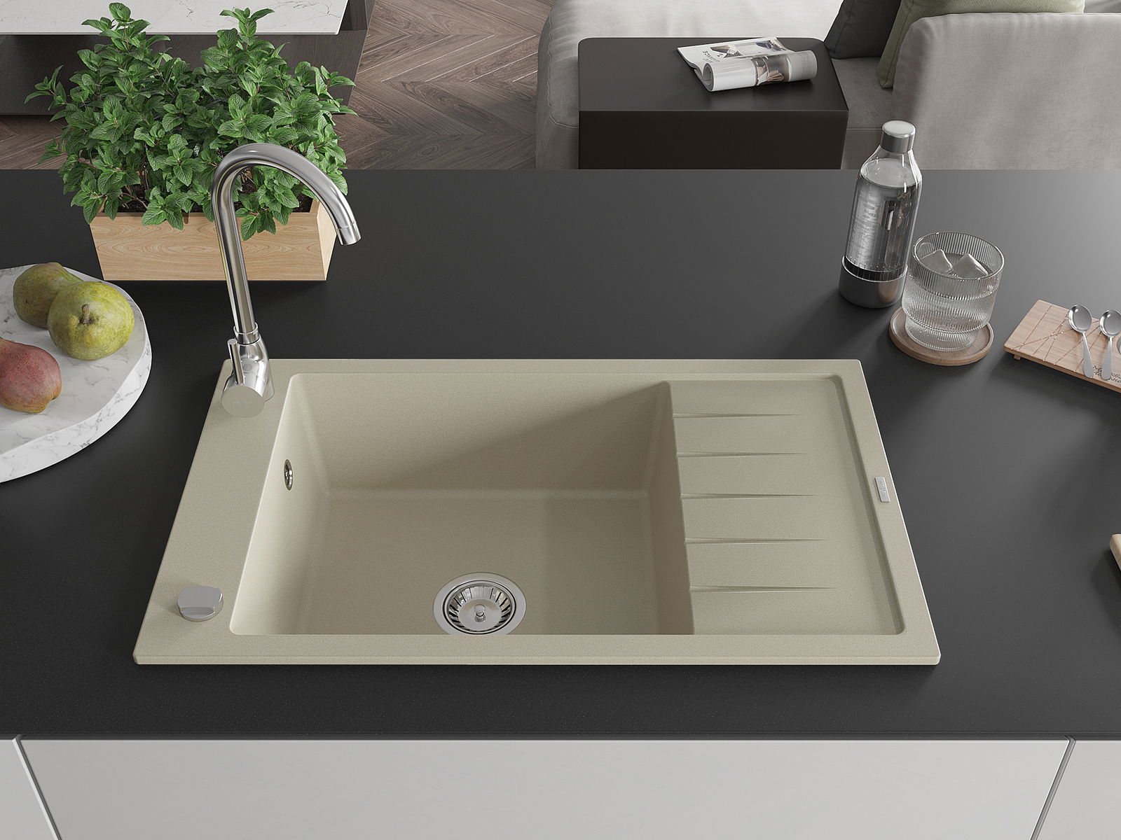 Mexen Elias granitinė vieno dubens plautuvė su nutekėjimu 795 x 480 mm, smėlio spalvos, chromuota sifonas - 6511791005-69
