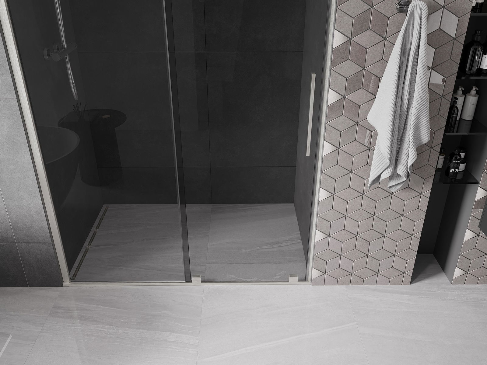 Mexen Velar slankios dušo durys 160 cm, grafitas, šlifuotas nikelis - 871-160-000-41-97