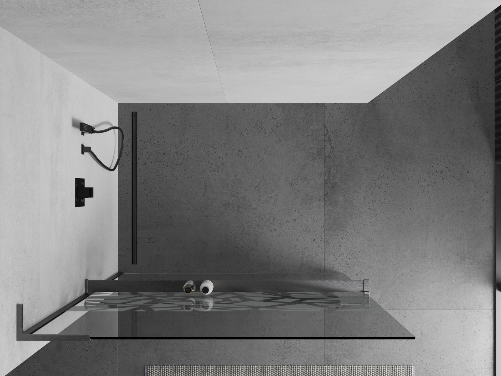 Mexen Kioto+ L dušo sienelė su lentyna Walk-in 70 x 200 cm, baltas raštas, gun grey šlifuotas - 800-070-123-66-85