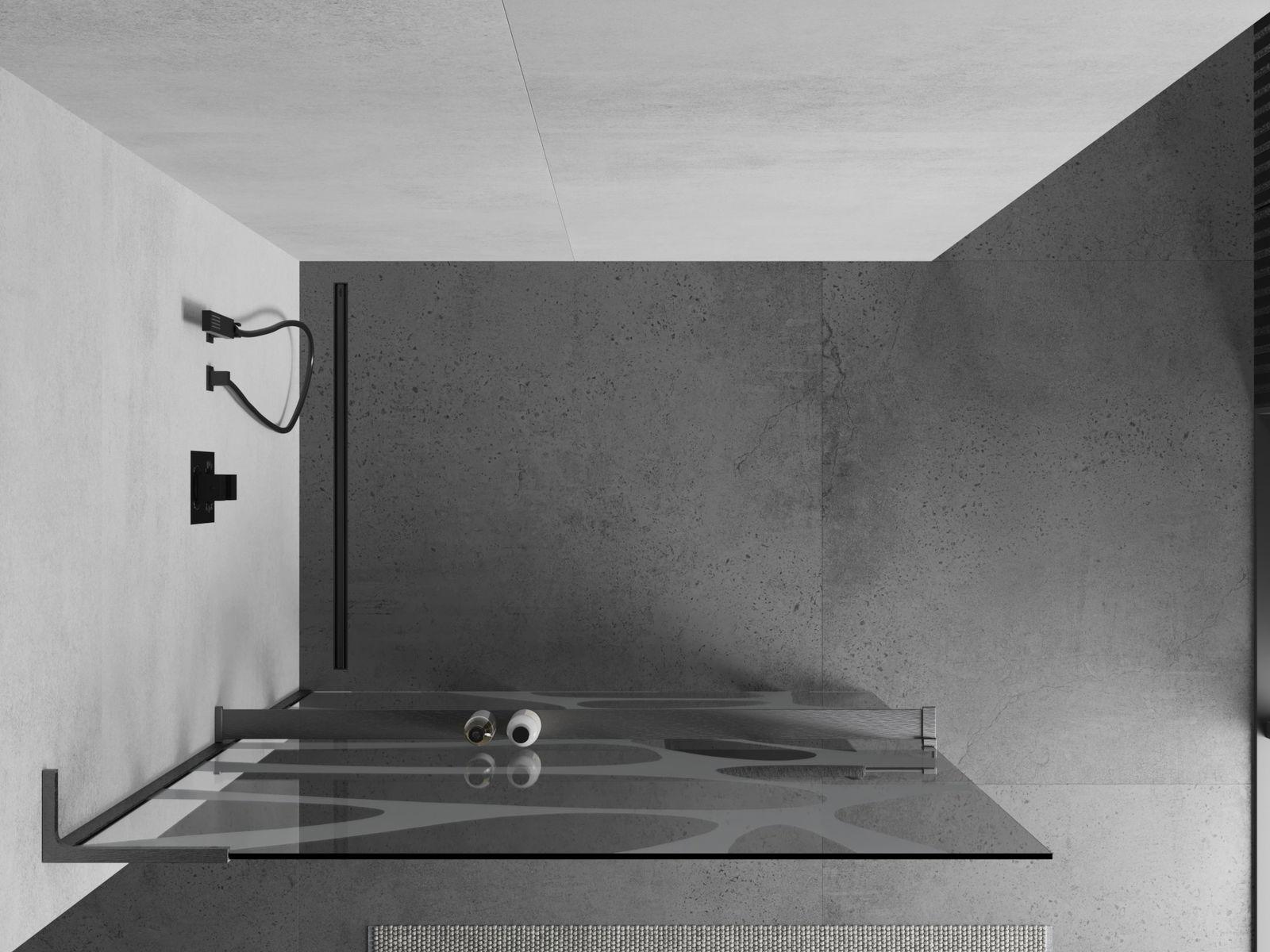 Mexen Kioto+ L dušo sienelė su lentyna Walk-in 70 x 200 cm, balta banga, gun gray šlifuota - 800-070-123-66-97