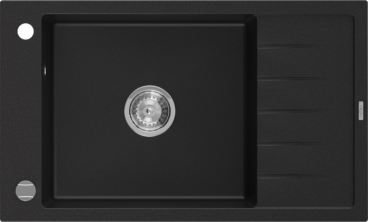 Mexen Elias granito plautuvė vienos talpos su nuvarvėjimo zona 795 x 480 mm, juodas, chromuota sifonas - 6511791005-77