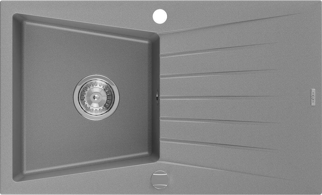 Mexen Cesar granitinė vienaaukštė plautuvė su nutekamuoju paviršiumi 775 x 470 mm, pilka, sifonas chromuotas - 6514771010-71
