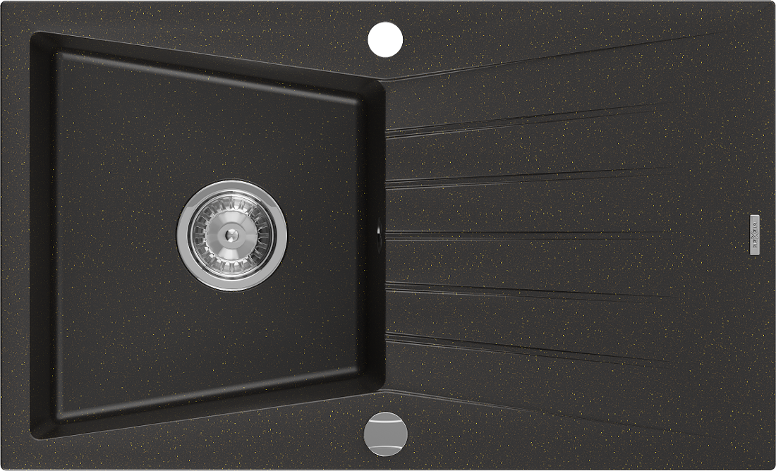 Mexen Cesar granito plautuvė su viena kamera ir nuvarvėjimo lenta 775 x 470 mm, juoda/auksinė metaliko, chromuotas sifonas - 65?