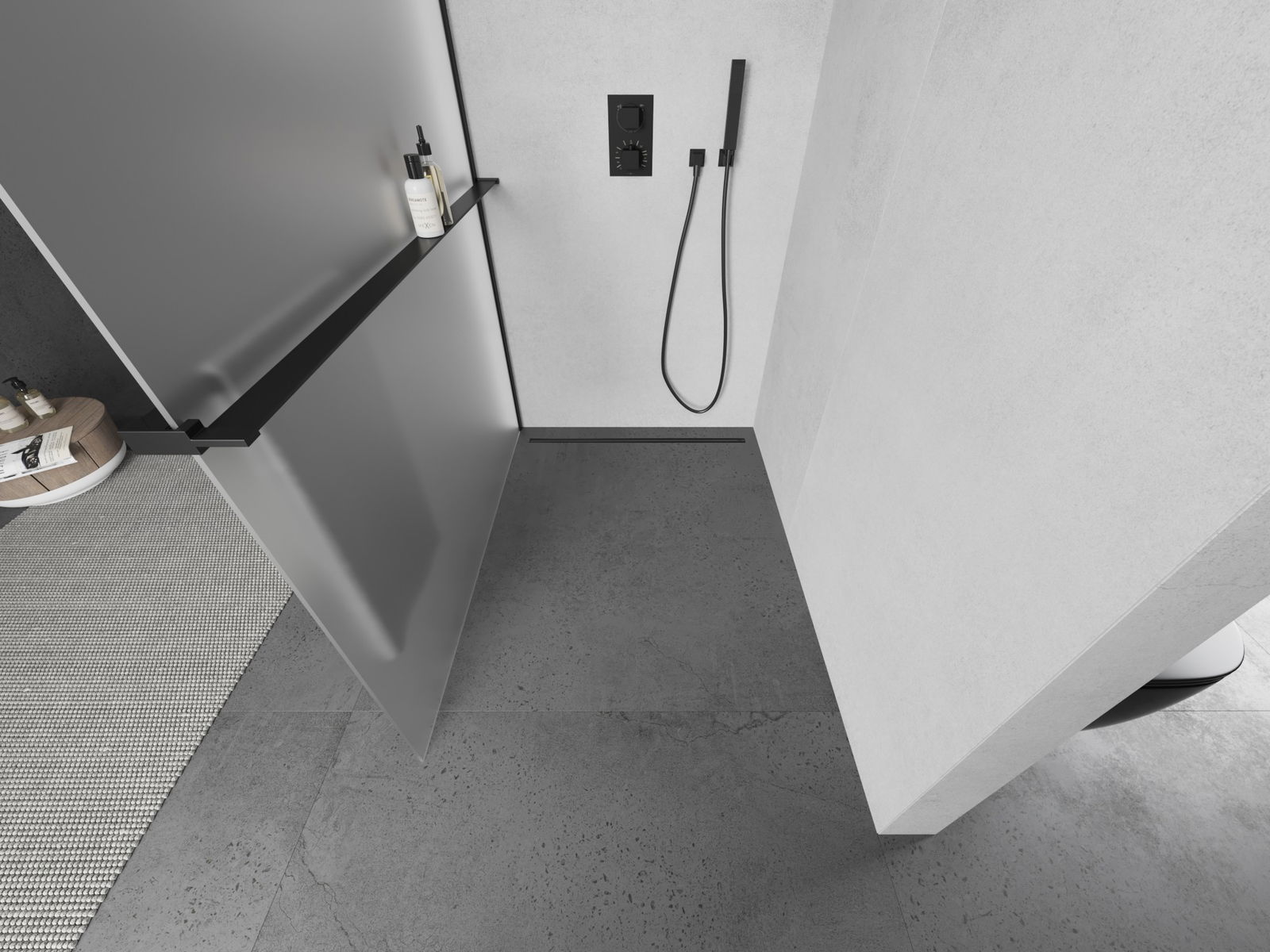 Mexen Kioto+ L dušo sienelė su lentyna Walk-in 90 x 200 cm, matinė, juoda - 800-090-123-70-30