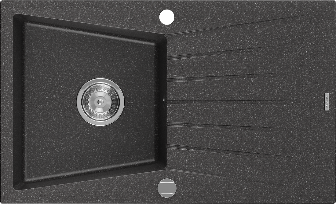Mexen Cesar granitinė vienos kameros plautuvė su drenažu 775 x 470 mm, juoda su dėmėmis, chromuotas sifonas - 6514771010-76