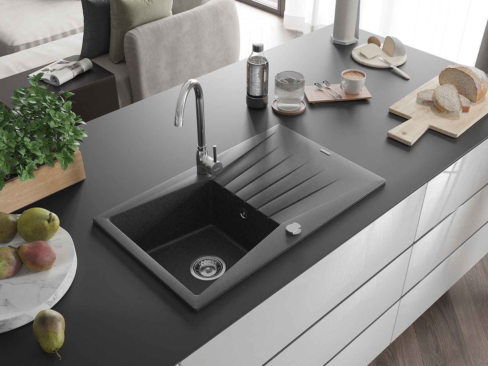 Kriauklės paviršius yra atsparus dėmėms ir spalvos pokyčiams, todėl jį lengva prižiūrėti ir jis išlaiko savo spalvą ilgą laiką. Estetiškai ir praktiškai papildo kiekvieną virtuvę.