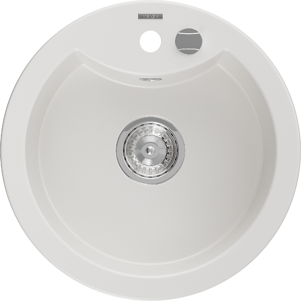 Mexen Diego granitinis vienos kameros plautuvė 488 x 480 mm, baltas, chromuotas sifonas - 6512481000-20