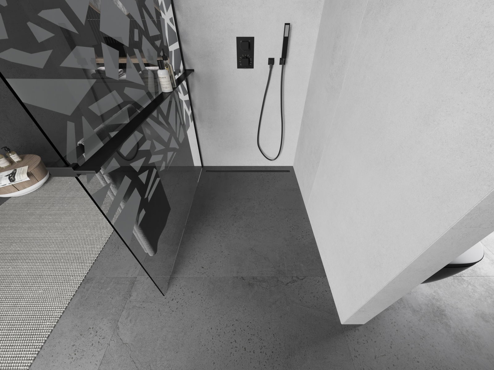 Mexen Kioto+ L dušo sienelė su lentyna Walk-in 80 x 200 cm, baltas raštas, juoda - 800-080-123-70-85