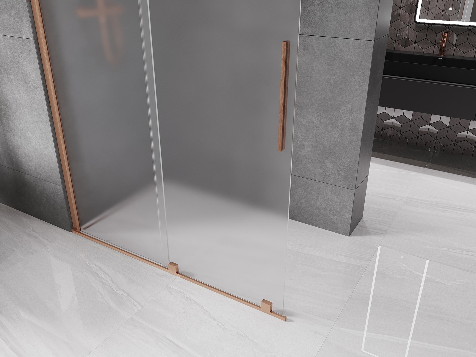 Mexen Velar Stumdoma dušo sienelė Walk-in 140 x 200 cm, matinė 8 mm, šlifuotas varis - 871-140-000-33-65