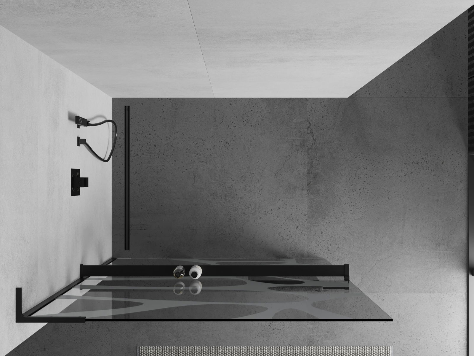 Mexen Kioto+ L dušo sienelė su lentyna Walk-in 90 x 200 cm, balta banga, juoda - 800-090-123-70-97