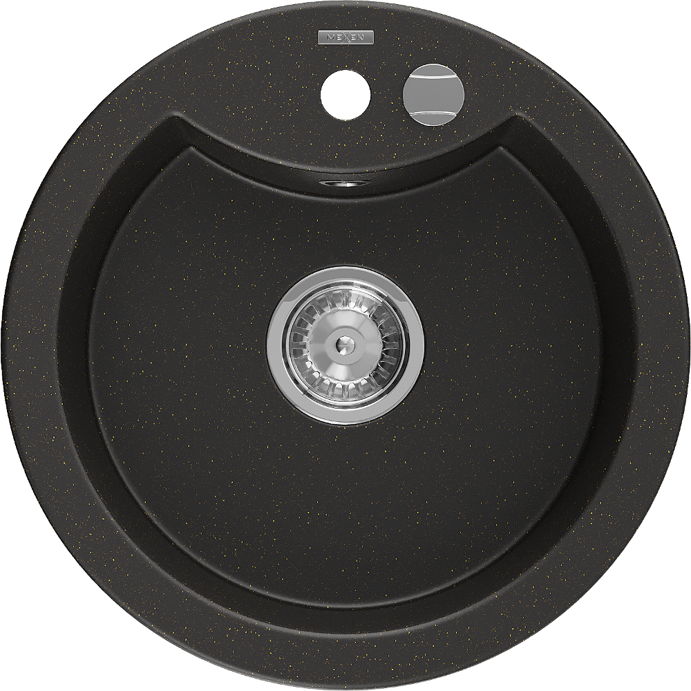 Mexen Diego granitinis vienos kameros plautuvė 488 x 480 mm, juodas/auksinis metalikas, chromuotas sifonas - 6512481000-75