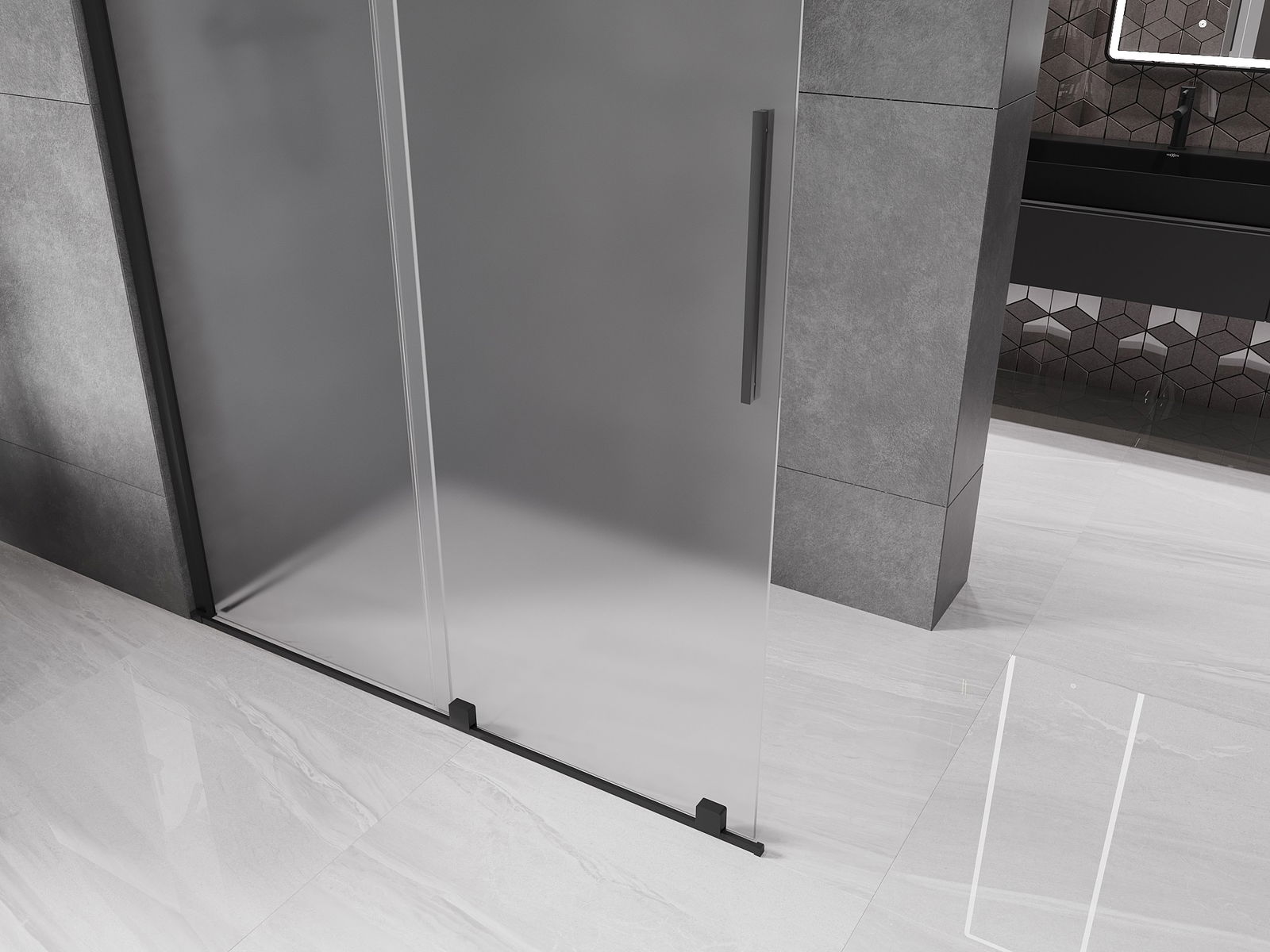 Mexen Velar slankiojanti dušo siena Walk-in 160 x 200 cm, matinė 8 mm, juoda - 871-160-000-33-70
