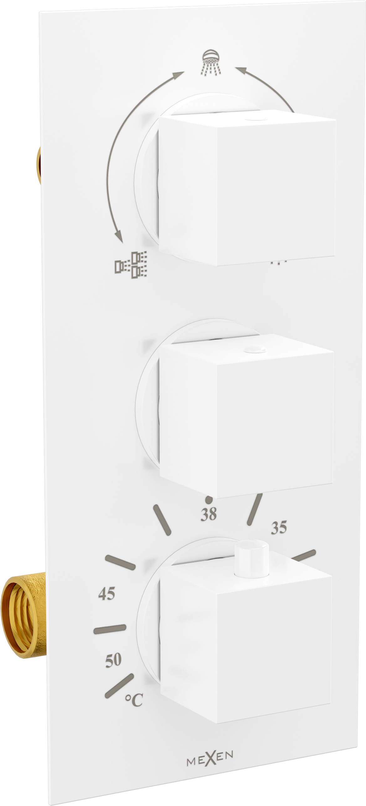 Mexen Cube termostatinis vonios-dušo maišytuvas, su 3 išėjimais, baltas - 77503-20