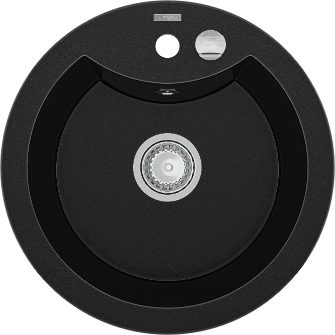 Mexen Diego granitinė virtuvės kriauklė, 1 sektoriaus, 488 x 480 mm, juoda, chromuotas sifonas - 6512481000-77