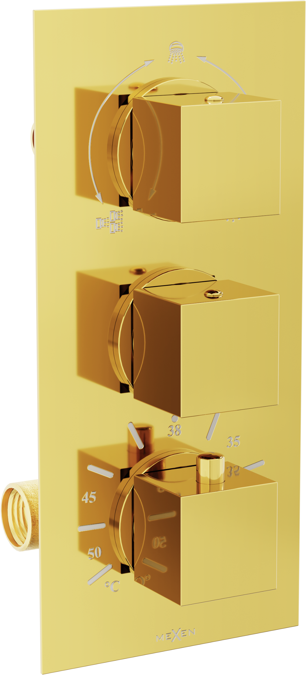 Mexen Cube termostatinis vonios ir dušo maišytuvas su 3 išėjimais, auksinis - 77503-50